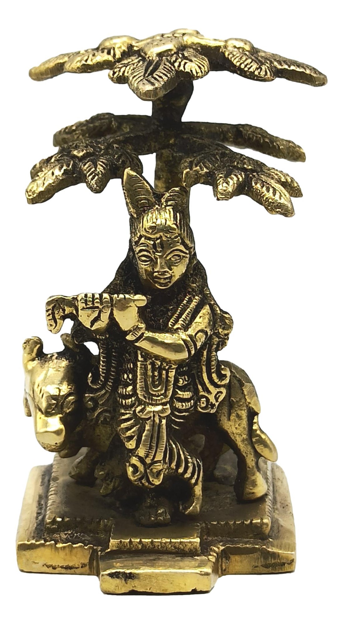 Celebrate the divine charm of Lord Krishna with this intricately crafted brass idol, featuring Krishna playing...