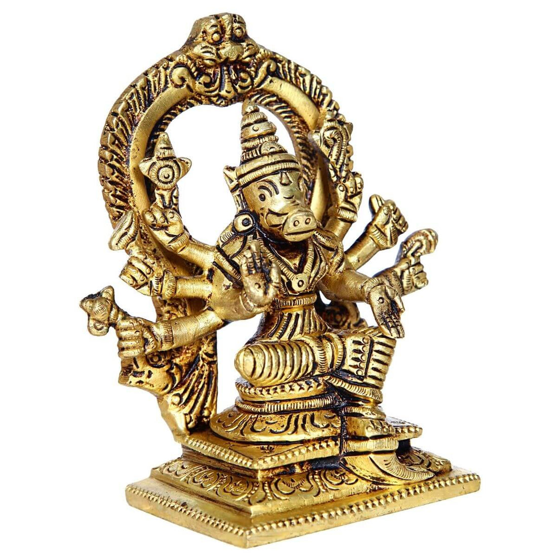 Description: Sri Varahi Amman Brass: Elevate your spiritual space with this exquisite brass statue of...