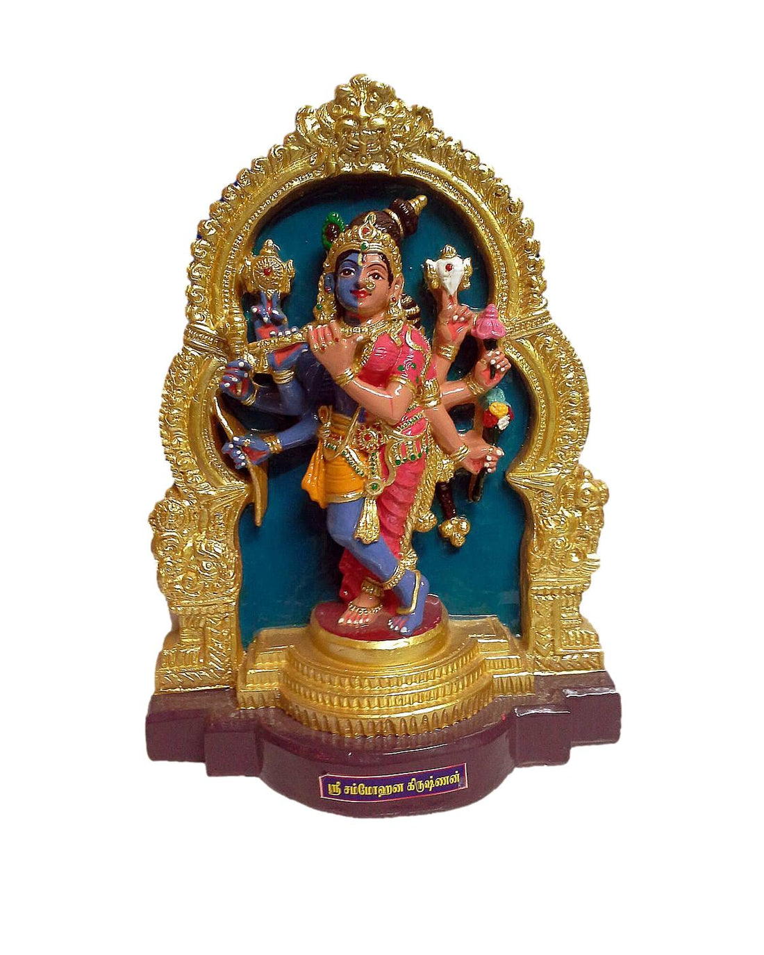 Adorn your space with the captivating charm of Sammohana Krishnar, crafted in high-quality fiberglass. Depicted...