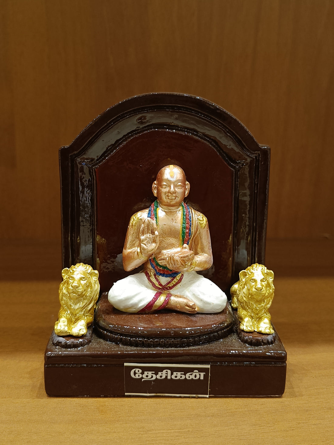 Description: This finely crafted Swami Vedanta Desikan idol, made from durable fiber, depicts the revered...