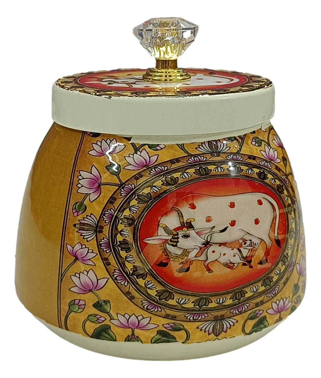 Description: The Pichwai Storage Box is a beautifully crafted, multi-purpose container inspired by traditional Pichwai...