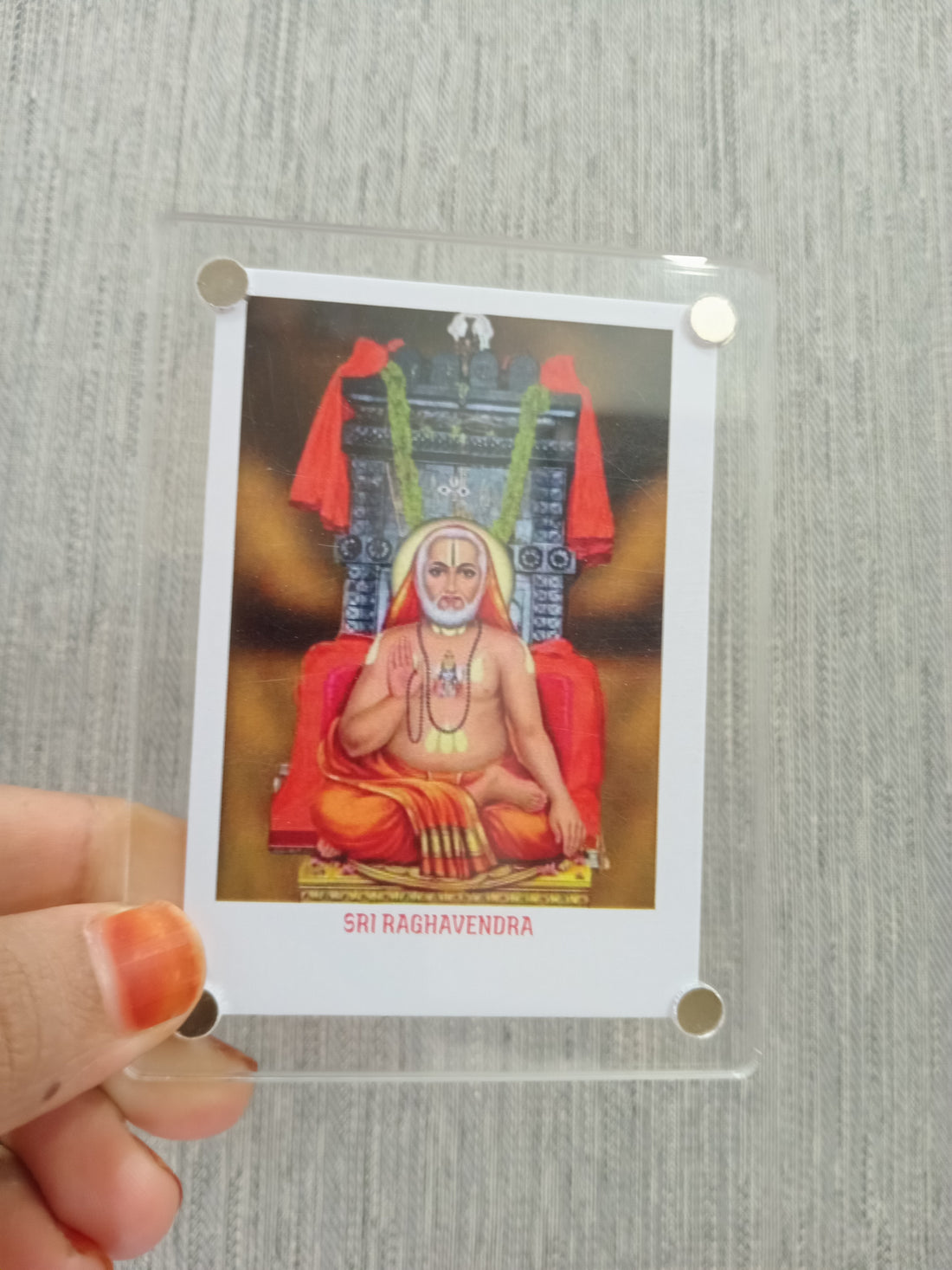 Description: Size Height- 4 inches Length -3 inches Weight-100gms A Sri Raghavendra Polaroid fridge magnet...
