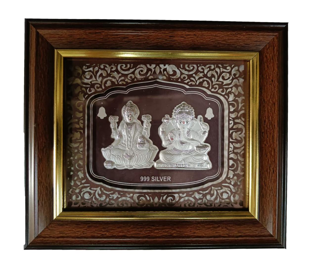 Enhance your home's spiritual ambiance with the exquisite 999 Lakshmi Ganesh Photo Frame. Crafted with precision, this beautiful frame features intricate detailing of Goddess Lakshmi and Lord Ganesha, symbols of wealth, prosperity, and wisdom. Made from high-quality materials, the frame boasts a stunning gold finish that adds a touch of elegance to any space. Ideal for your living room, pooja room, or as a thoughtful gift for loved ones, this photo frame is not just a decorative piece but a source of divine blessings and positive energy. Bring home this auspicious symbol and invite good fortune into your life.
