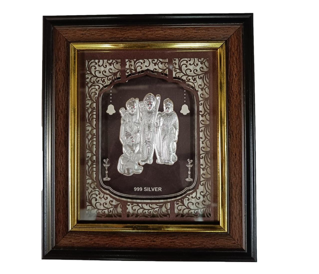 The 999 Ram Darbar Photo Frame beautifully captures the divine presence of Lord Ram, Goddess Sita, Lord Lakshman, and Lord Hanuman. Crafted with precision, this exquisite photo frame features high-quality materials and intricate detailing, ensuring durability and elegance. The vibrant colors and lifelike imagery make it a perfect addition to your home, office, or temple, bringing a sense of spirituality and peace. Ideal for gifting during festivals and special occasions, this Ram Darbar Photo Frame serves as a constant reminder of devotion and divine blessings, enhancing the aesthetic appeal and spiritual ambiance of any space.