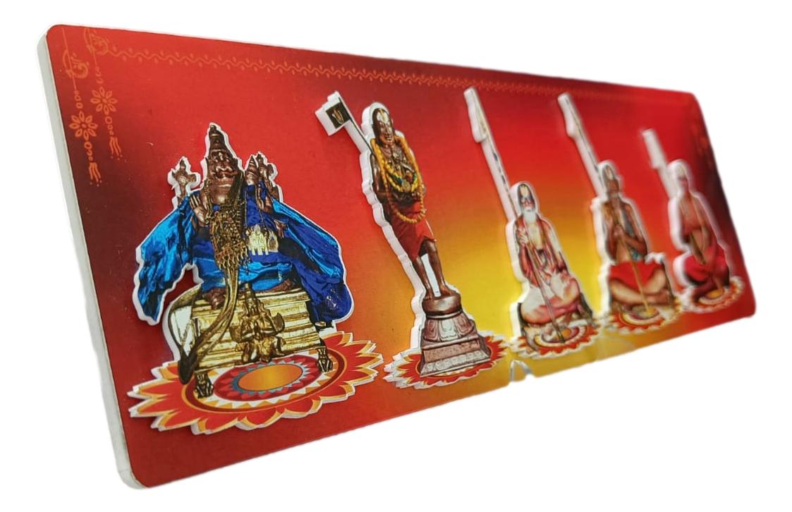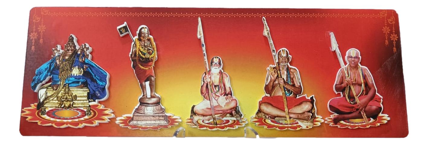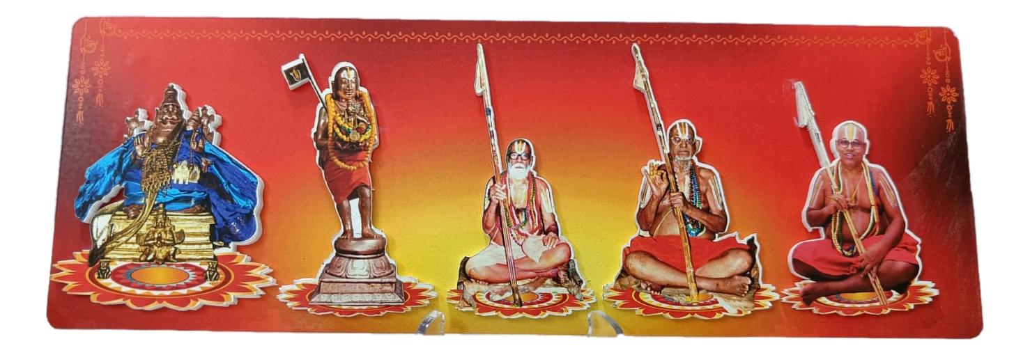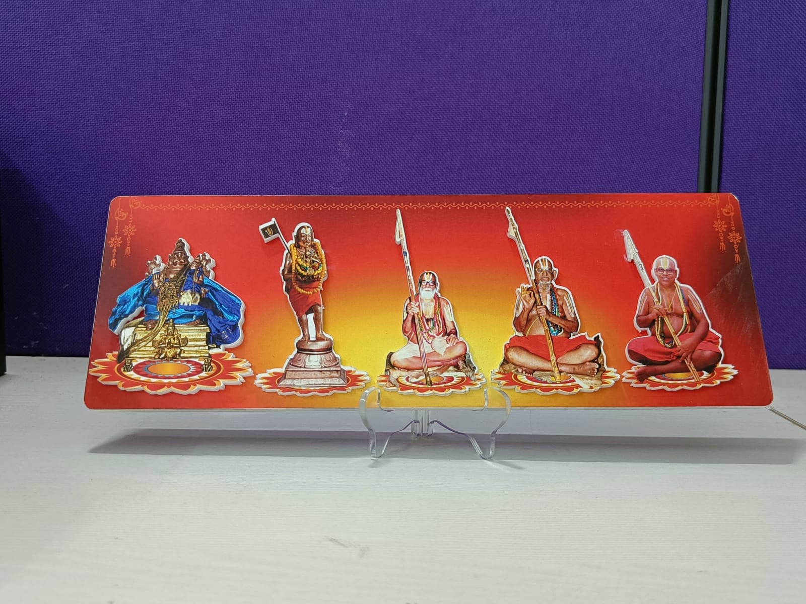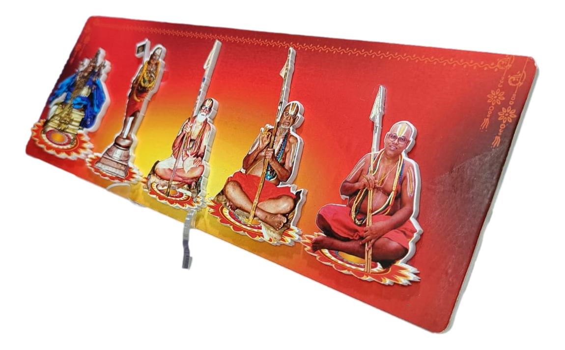 This elegant Acrylic Acharyas Table Stand is a perfect addition to your workspace, pooja room, or study area, designed to bring divine presence and inspiration. The table stand features a beautifully crafted image of the revered Acharyas of the Ahobila Mutt, a prominent institution in the Sri Vaishnava tradition.