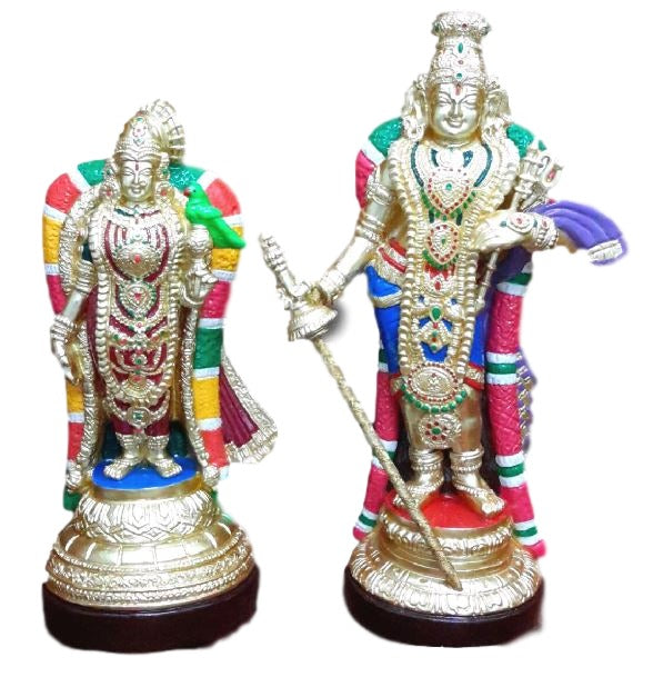 This exquisite fiber idol depicts Sri Andal and Lord Rengamannar in a majestic standing posture, radiating divine love and devotion. Meticulously crafted with intricate detailing, the idol captures the spiritual essence of the divine couple, making it ideal for your home altar, puja room, or as a meaningful spiritual gift. A perfect representation of bhakti and divine union, this piece brings auspiciousness to any sacred space.