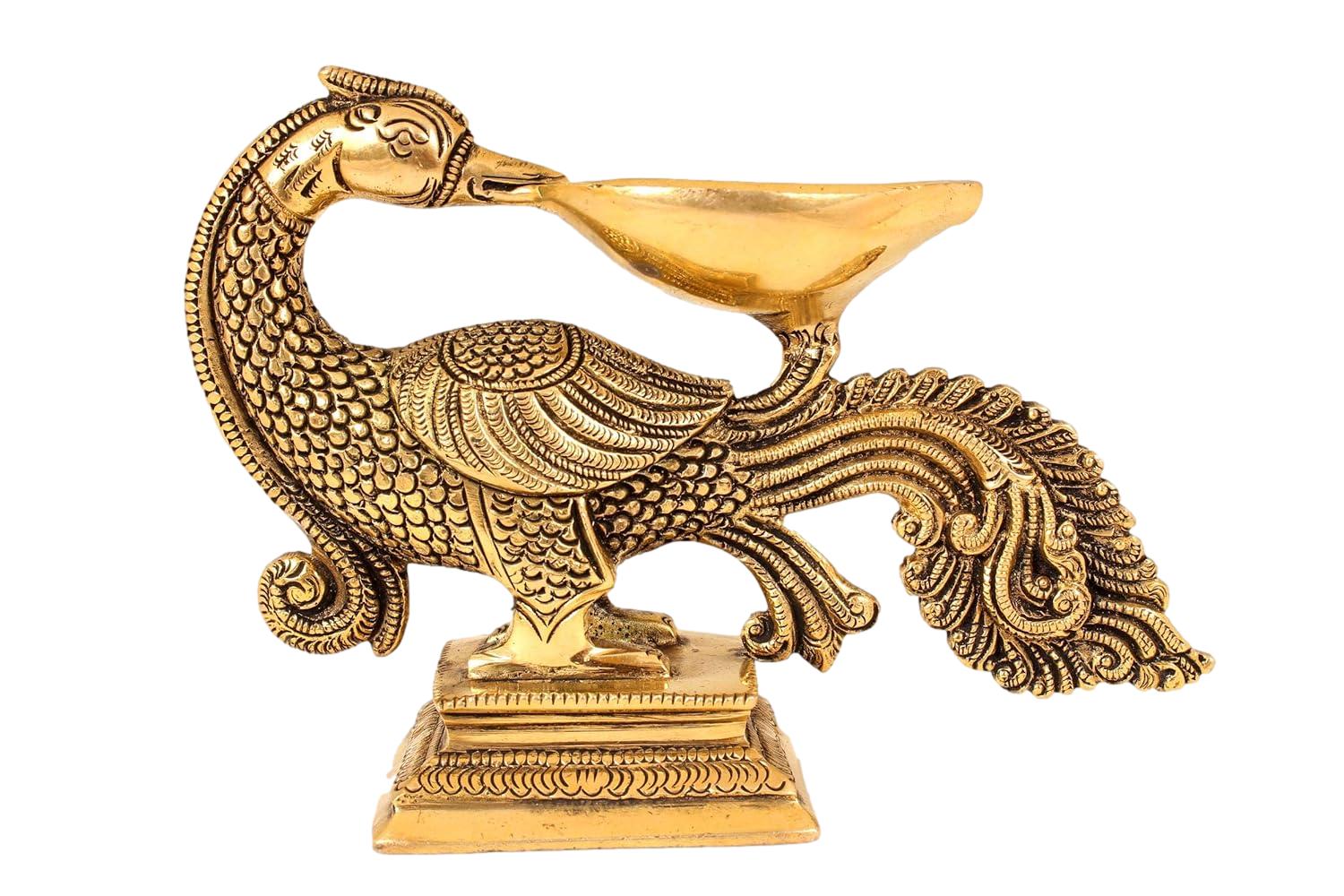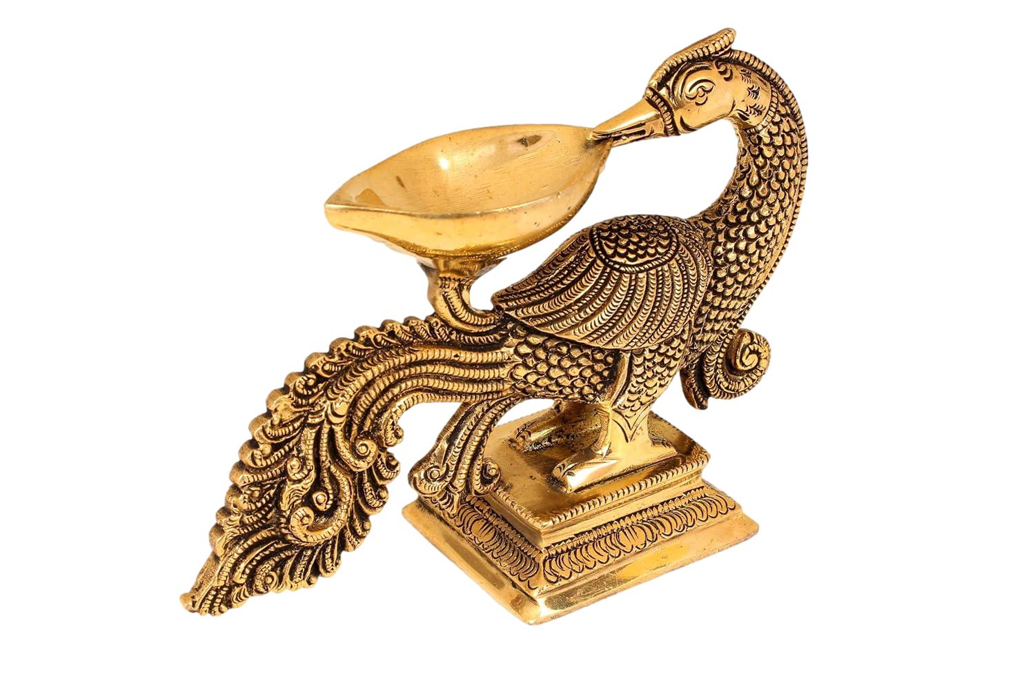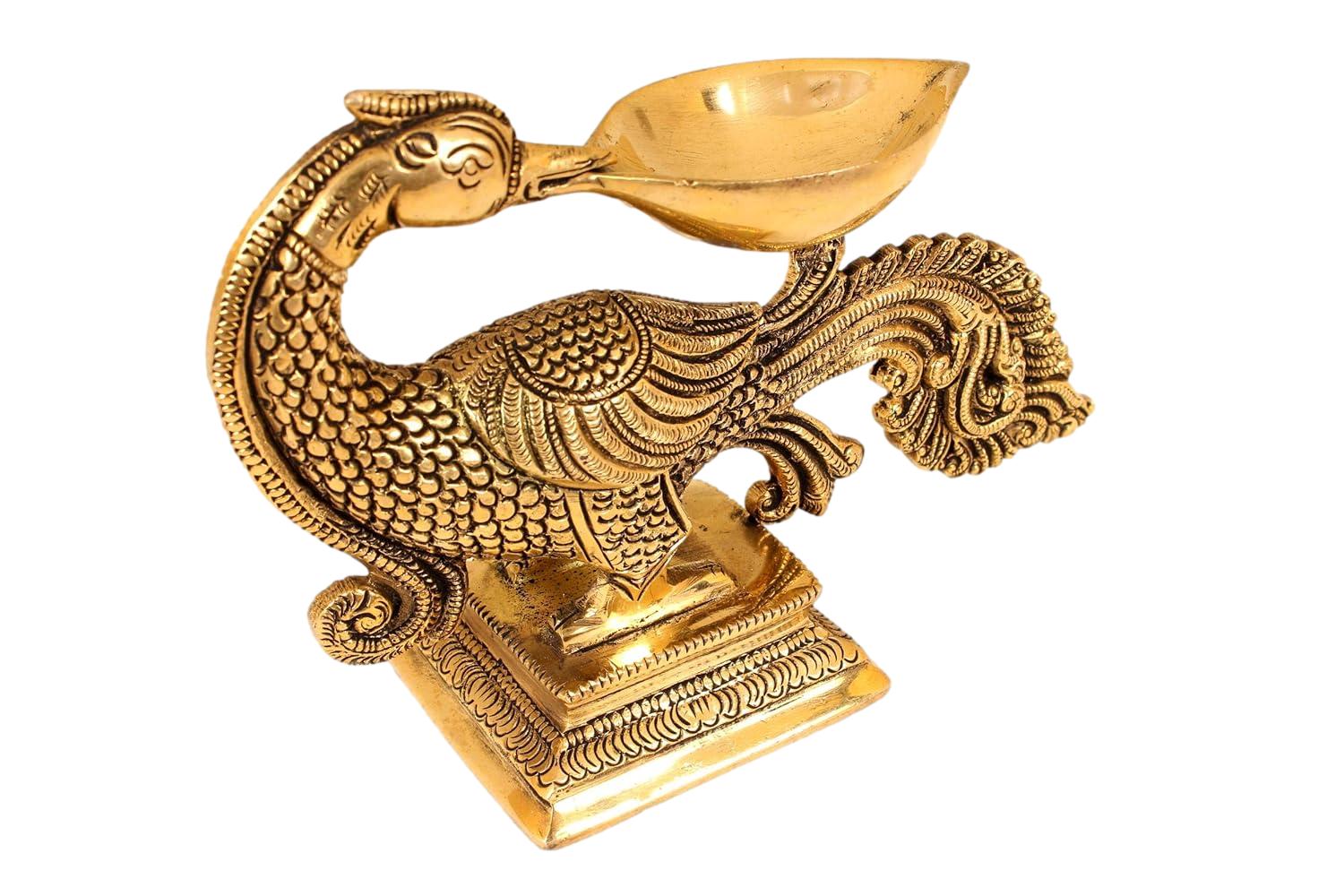 Annam/Bird Brass lamp Diya Glossy Antique Finish