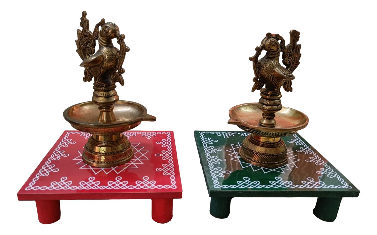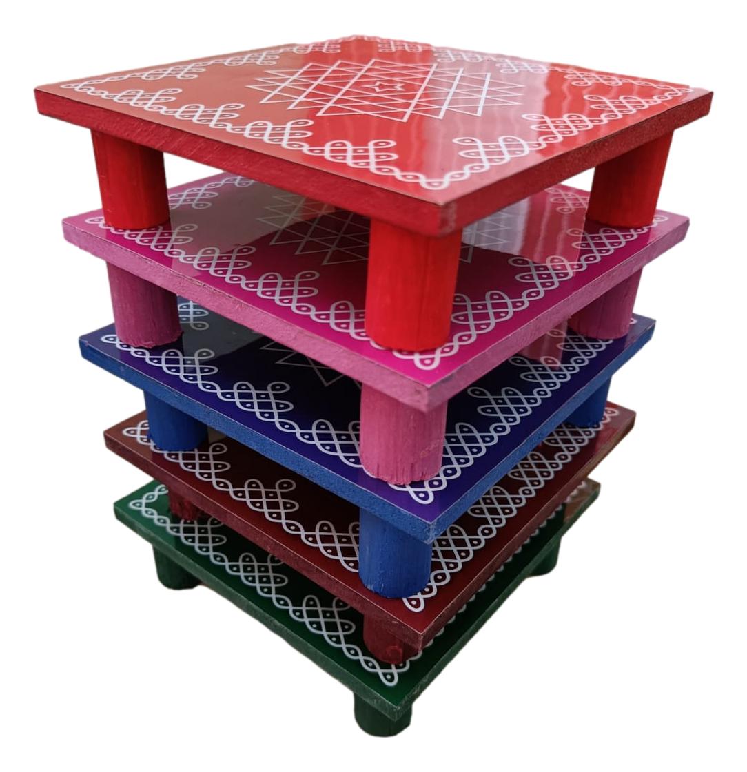 Auspicious Sri Chakra Wooden Stand Puja Chowki 6*6