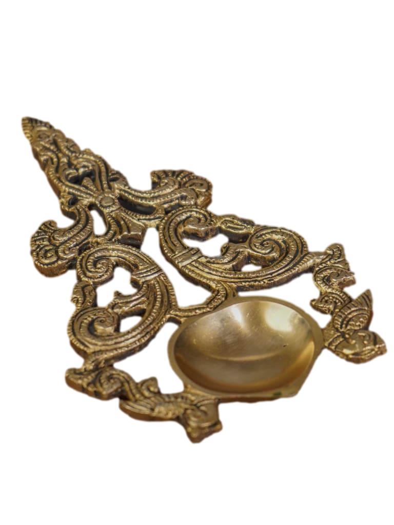 Introducing our exquisite Brass Aarti Diya, a timeless piece blending tradition with elegance. Crafted from high-quality brass, this diya features intricate detailing and a lustrous antique finish, adding a touch of sophistication to your prayer rituals. Its sturdy design ensures stability during aarti ceremonies, while the deep dish holds ample oil for a prolonged flame. The diya's five faces symbolize the five elements, enhancing its spiritual significance. Whether for personal devotion or gifting, this Brass Aarti Diya embodies craftsmanship and devotion, making it a cherished addition to any sacred space or home altar.