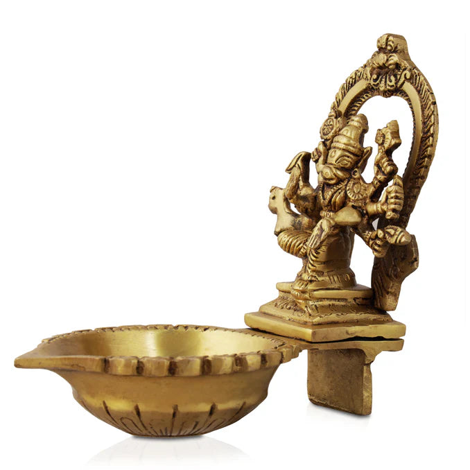 The Brass Antique Varahi Vilakku is a stunning piece that combines tradition and elegance. Crafted from high-quality brass, this Vilakku features intricate detailing, including the depiction of Varahi, a powerful and revered deity in Hindu mythology. The antique finish adds a touch of vintage charm, making it a perfect addition to any home or sacred space. The five faces of the Vilakku symbolize auspiciousness and prosperity, while the sturdy stand ensures stability during use. Whether for daily rituals or special occasions, the Brass Antique Varahi Vilakku is sure to enhance the ambiance and spiritual significance of any environment.