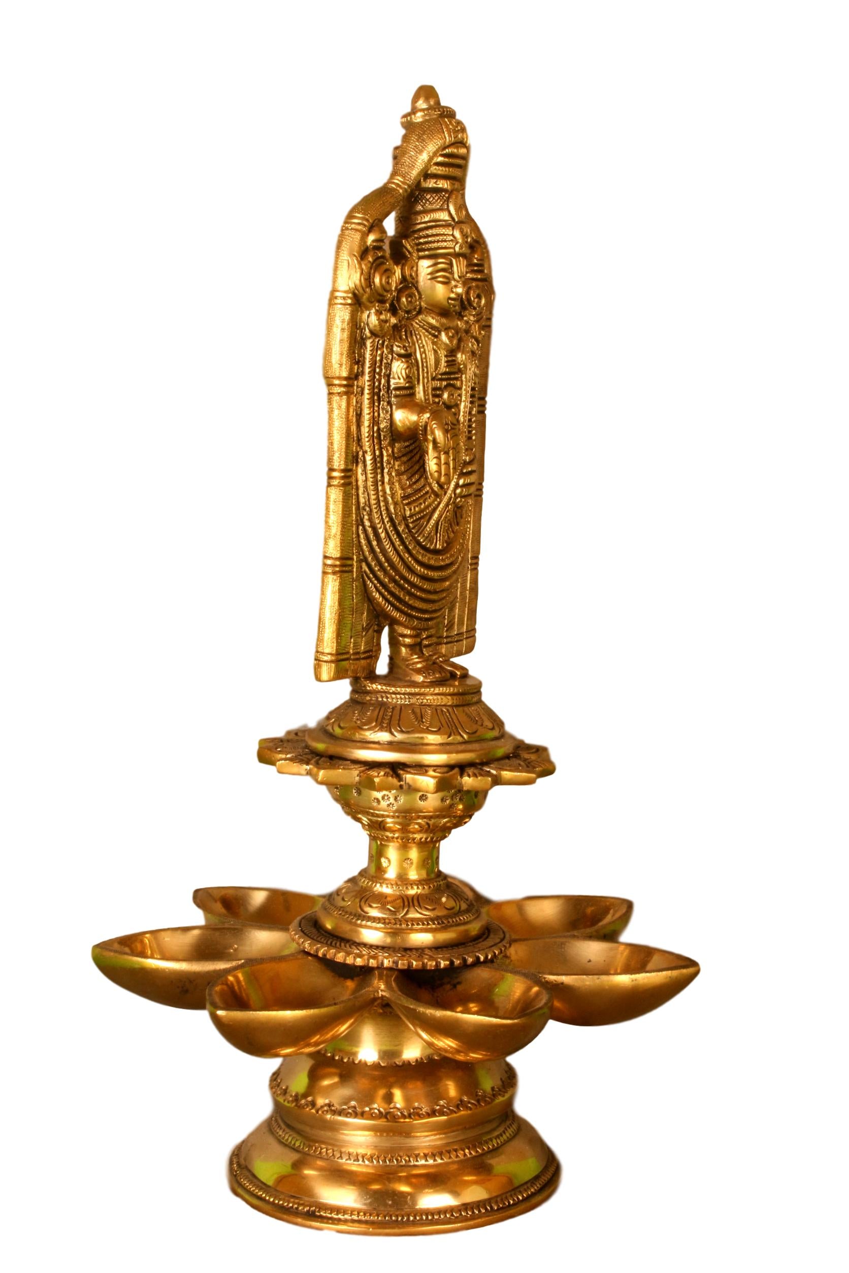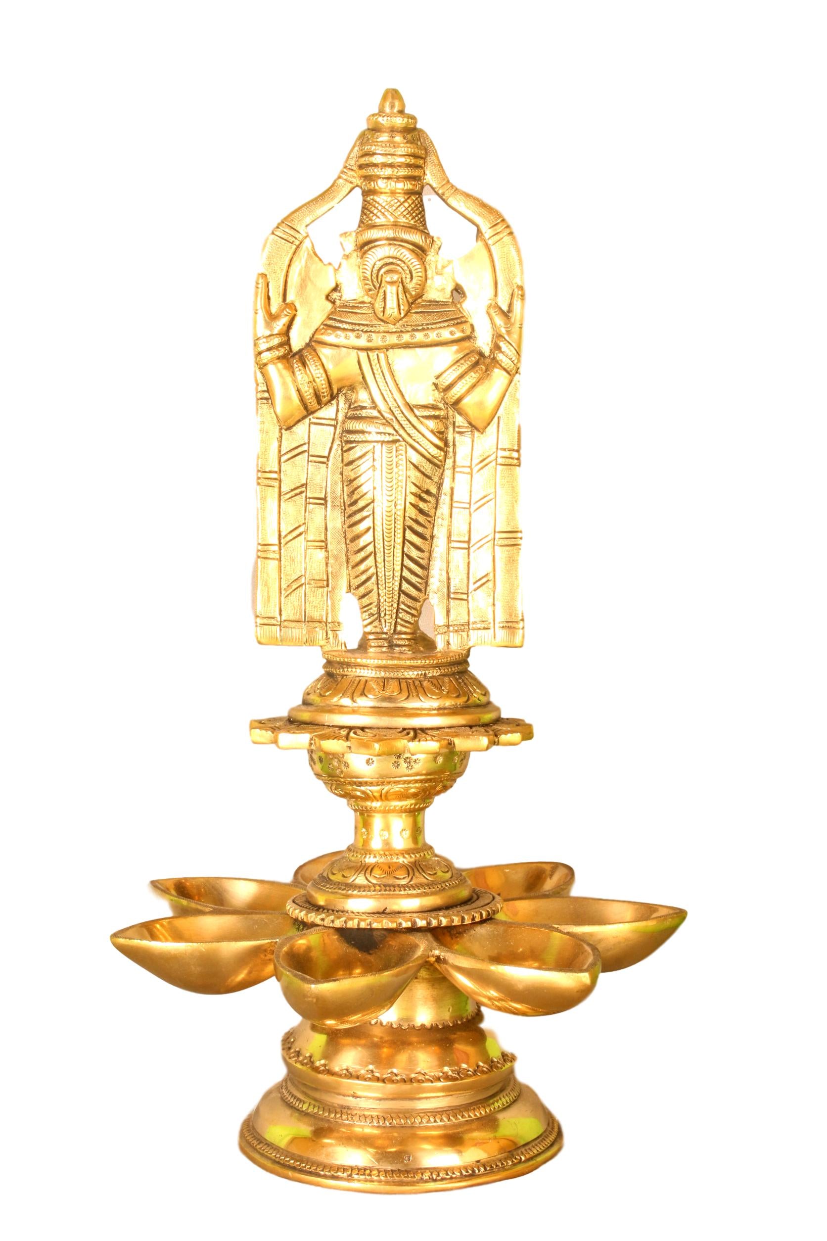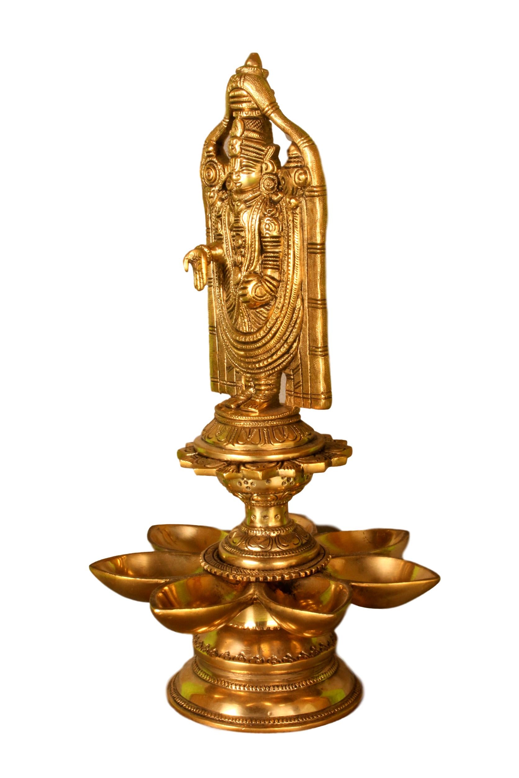 Illuminate your space with the divine radiance of the Brass Balaji Lamp. Meticulously crafted from high-quality brass, this lamp features an intricate depiction of Lord Balaji, symbolizing prosperity and divine blessings. The lamp's elegant design includes a sturdy base and a deep bowl for oil, ensuring a steady flame. Perfect for daily prayers, festive occasions, or as a thoughtful gift, this lamp brings a touch of spiritual elegance to any setting. Its durable brass construction ensures longevity, while its traditional design enhances the sanctity of your home. Light up your life with the sacred glow of the Brass Balaji Lamp.