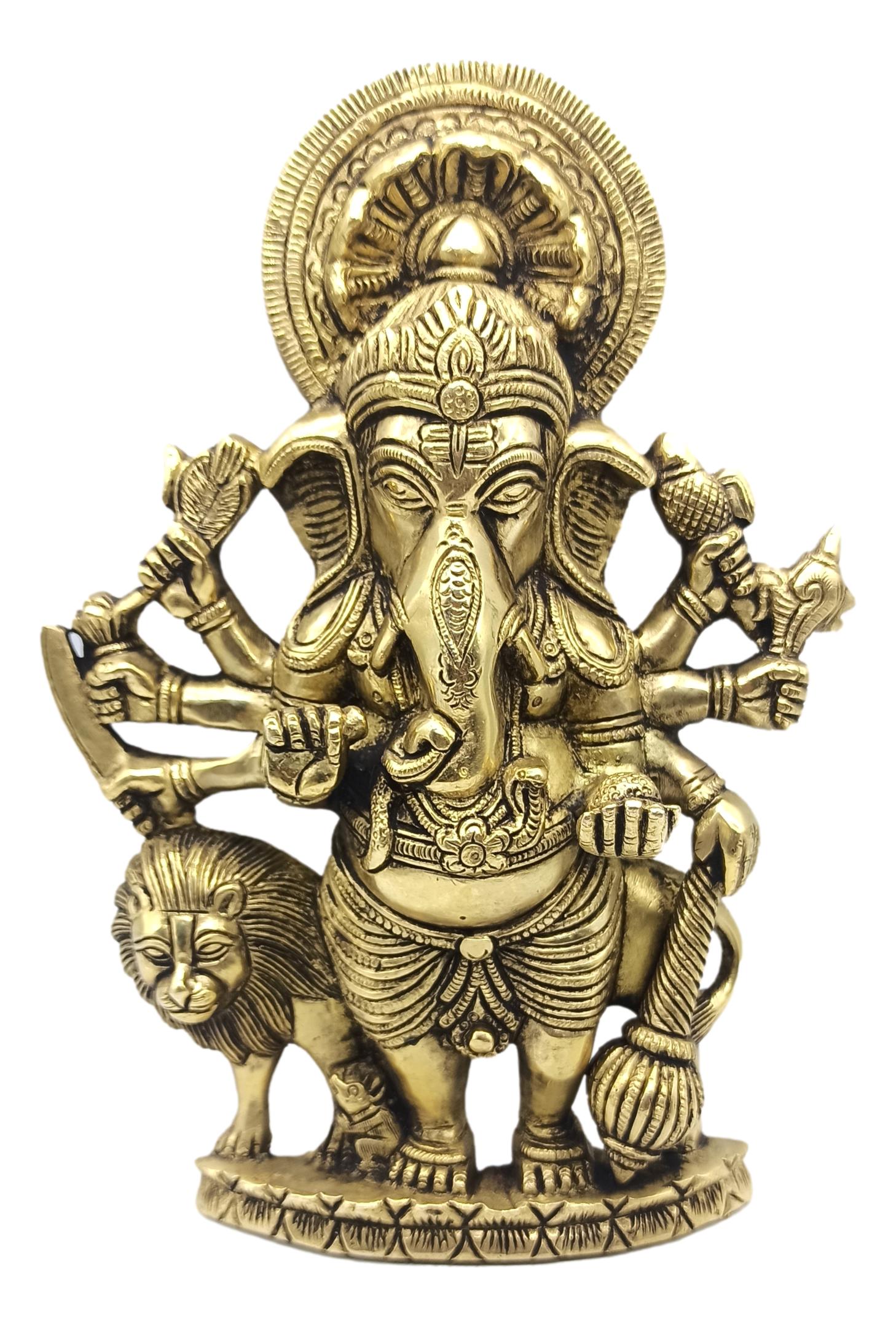 Brass Drishti Ganesh on Lion Idol | Lion Vinayaka | Lord Ganapati
