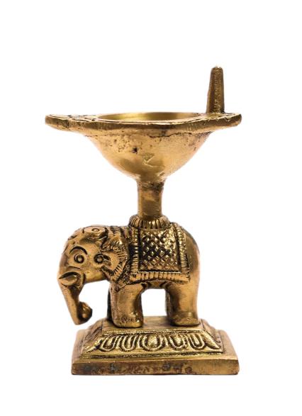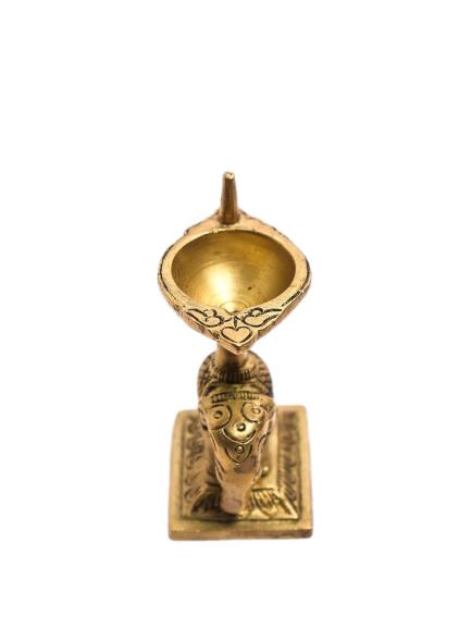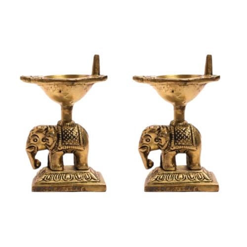 The Brass Elephant Oil Lamp Diya is a stunning piece of traditional Indian craftsmanship and artistry. Crafted from high-quality brass, this oil lamp features intricate detailing of an elephant, symbolizing strength, wisdom, and good fortune. The lamp is designed with a spacious oil reservoir and a steady base for safe placement. Its elegant curves and polished finish enhance any space, adding a touch of ethnic charm and spirituality to your home or sacred area. Perfect for religious ceremonies, festivals, or as a decorative accent, this Brass Elephant Oil Lamp Diya illuminates your surroundings with warmth and timeless beauty.