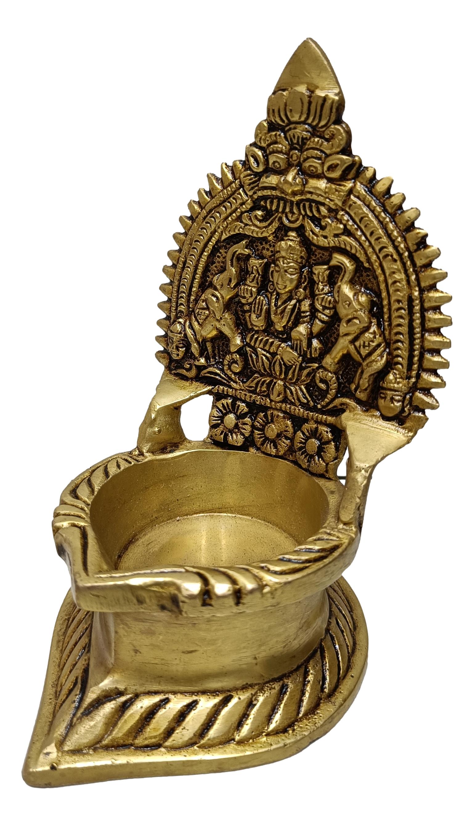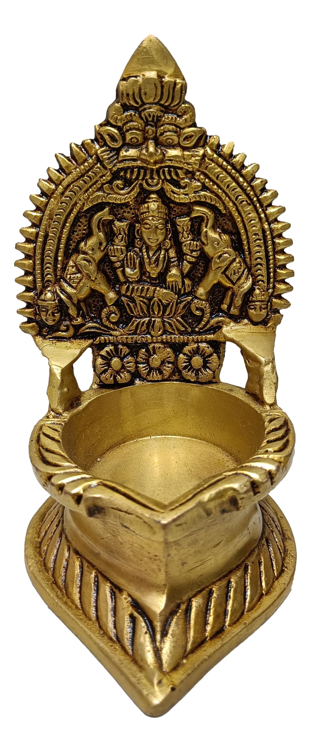 The Brass Gajalakshmi Oil Lamp is a beautifully crafted piece of traditional Indian decor. Featuring Goddess Lakshmi seated on a lotus with elephants on either side, this lamp symbolizes prosperity and good fortune. Made from high-quality brass, it boasts intricate detailing and a polished finish, making it a stunning addition to any home altar or living space. Ideal for festivals, rituals, or as a thoughtful gift, this oil lamp enhances the spiritual ambiance while adding a touch of elegance. Light it to invite positive energies and blessings into your home.