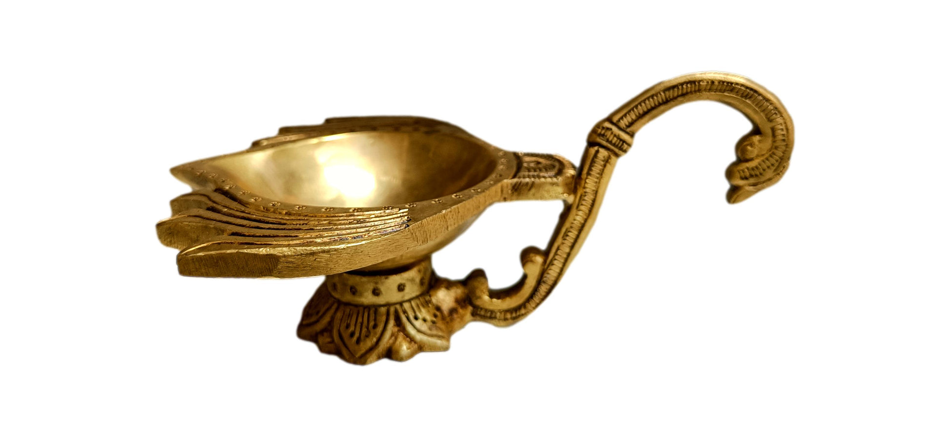 A perfect blend of art and devotion, this Brass Lotus Diya with Handle is a meaningful addition to any sacred setting.
