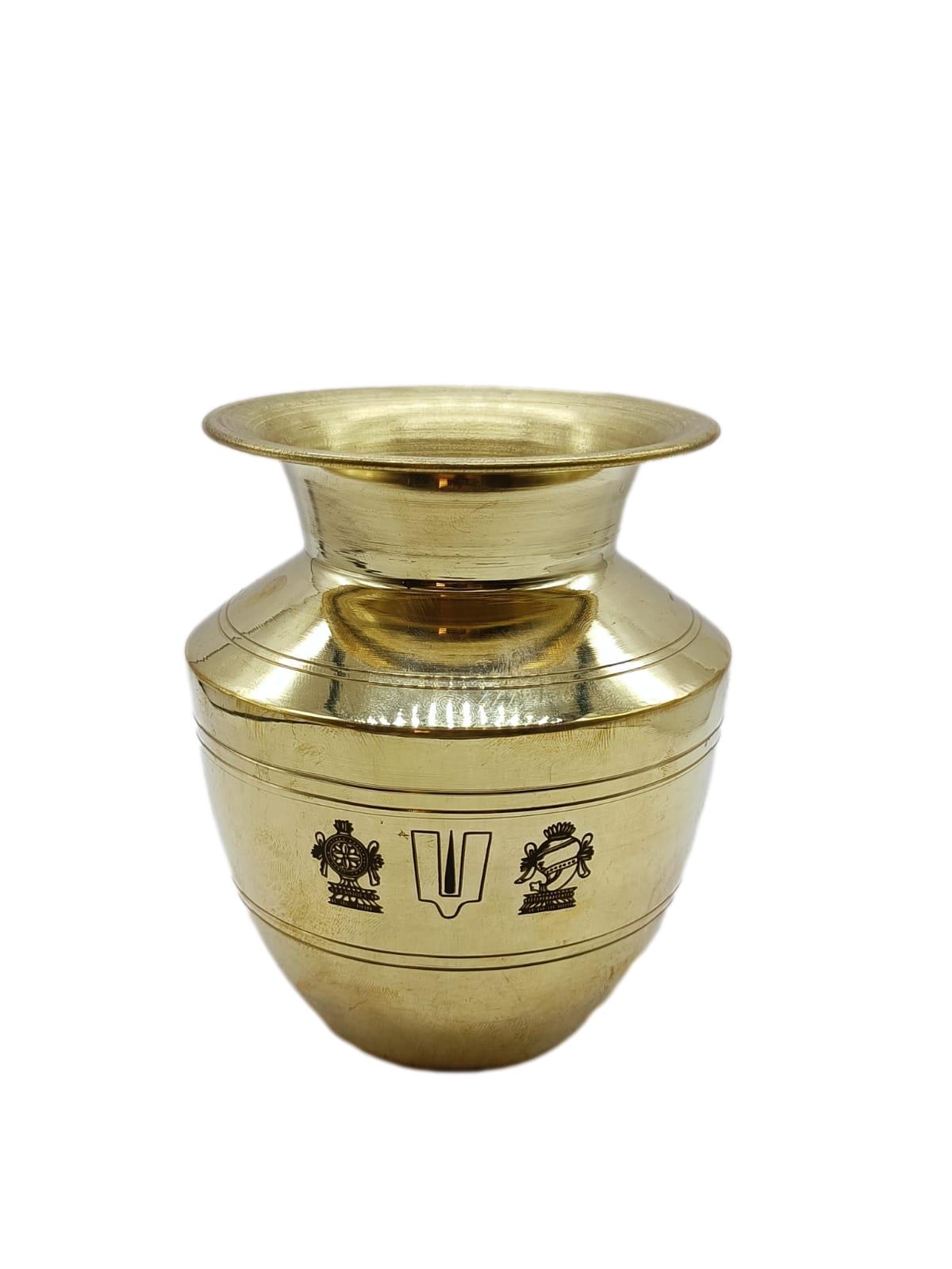 Introducing the Brass Iyengar Sombu Thiruman Sangu Chakaram Encarcerd—a timeless fusion of tradition and elegance. Crafted from premium brass, this sacred ensemble showcases intricate detailing, embodying the essence of South Indian heritage. The Sombu, Thiruman, Sangu, and Chakaram, revered symbols in Iyengar culture, are exquisitely merged in a harmonious design. Perfect for religious ceremonies or as a cherished gift, each piece resonates with spiritual significance and artistic brilliance, making it a cherished addition to any collection.