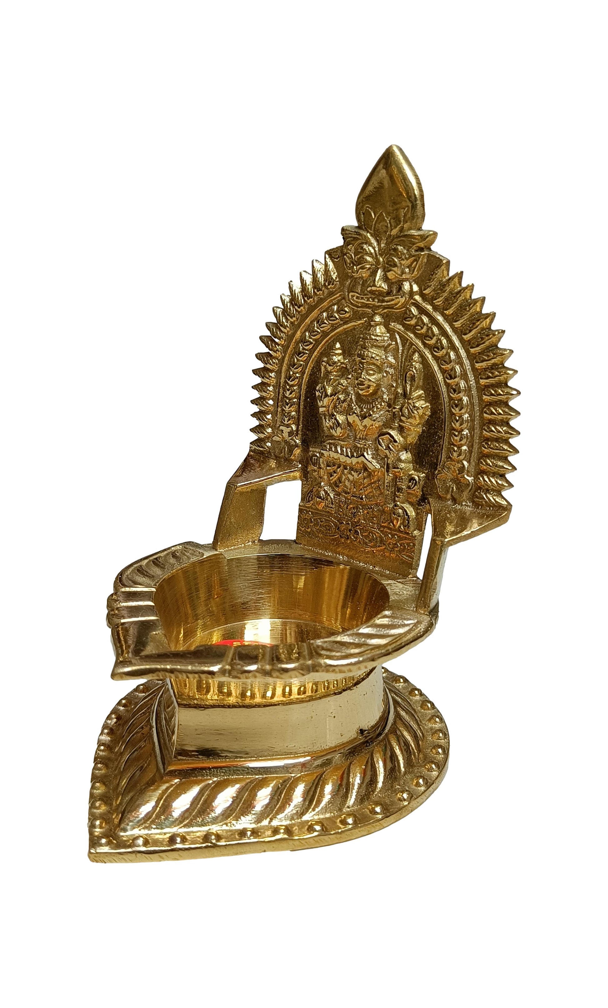 The Brass Kamakshi Diya Amman Oil Lamp is a beautifully crafted traditional lamp symbolizing devotion and prosperity. Designed in the graceful form of Goddess Kamakshi, this diya features intricate details that reflect divine elegance. Made from high-quality brass, it ensures durability and a radiant golden finish, perfect for creating a spiritual ambiance during poojas, festivals, or daily rituals. Its sturdy base and spacious oil reservoir make it functional and easy to use. Ideal for homes, temples, or gifting, this oil lamp embodies divine blessings, illuminating your space with warmth, positivity, and spiritual energy. A timeless addition to any sacred setting!