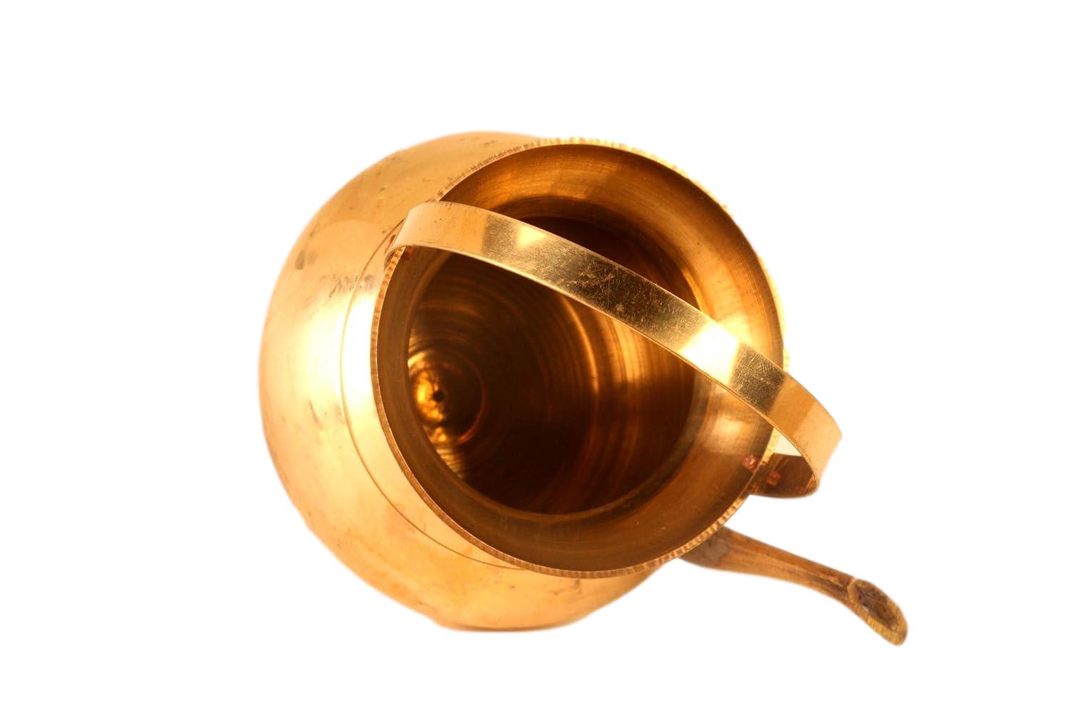Its elegant design features a rounded body with a spout for pouring water, ideal for religious ceremonies, holy baths, and rituals. Whether displayed as a decorative piece or utilized in sacred practices, the Brass Kamandalam adds a touch of spiritual grace and cultural heritage to any setting.