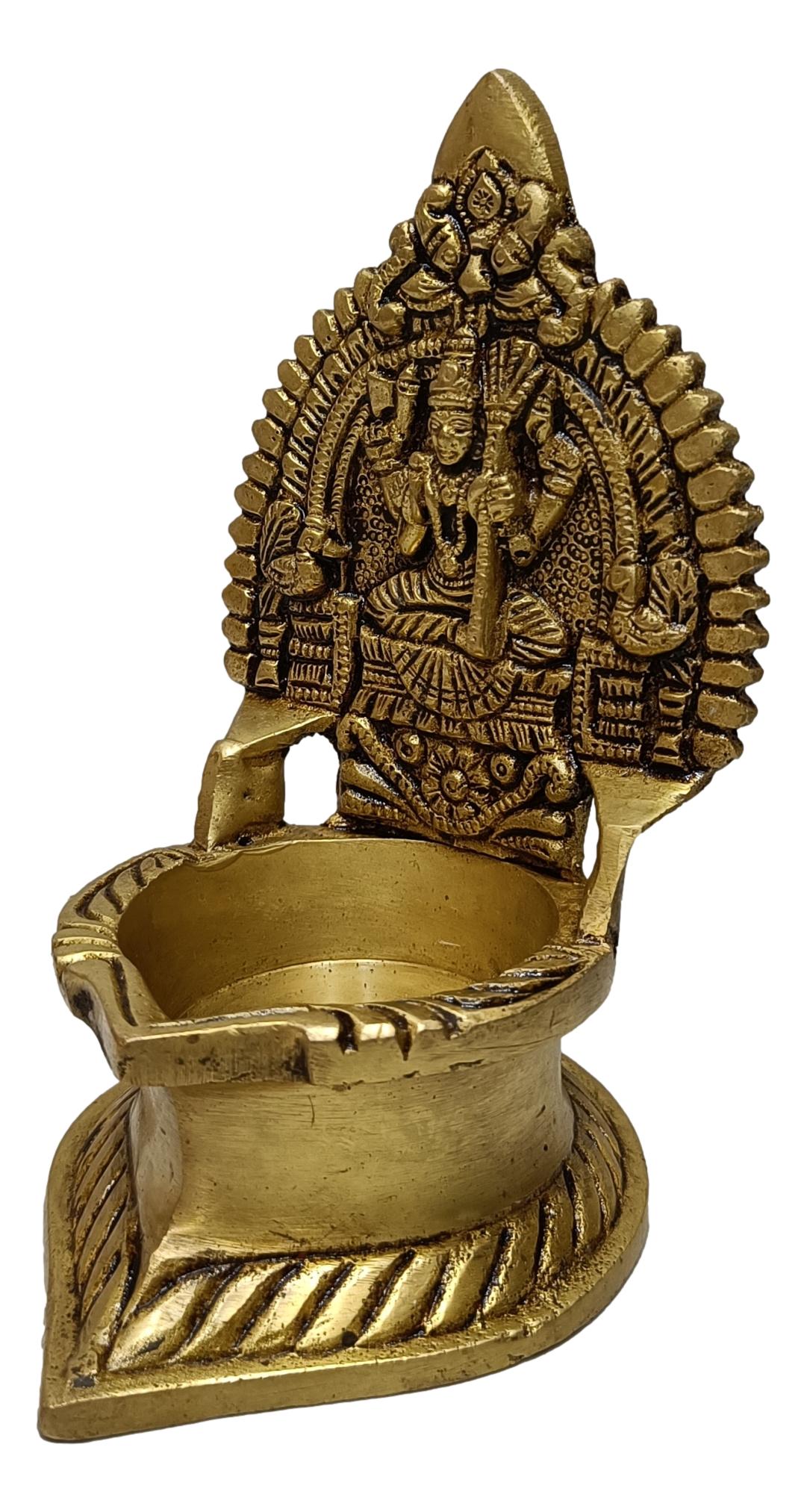 The Brass Kamatchi Vilakku is a beautifully crafted traditional oil lamp, symbolizing purity and light. Made from high-quality brass, this lamp features intricate designs that reflect rich cultural heritage. Ideal for daily rituals and special occasions, the Kamatchi Vilakku adds a spiritual ambiance to any space. Its sturdy base ensures stability, while the polished surface shines brilliantly, enhancing its aesthetic appeal. This lamp is not only a functional item for religious ceremonies but also a timeless decorative piece, making it a perfect addition to any home or temple. Easy to maintain, it offers a warm, inviting glow when lit.