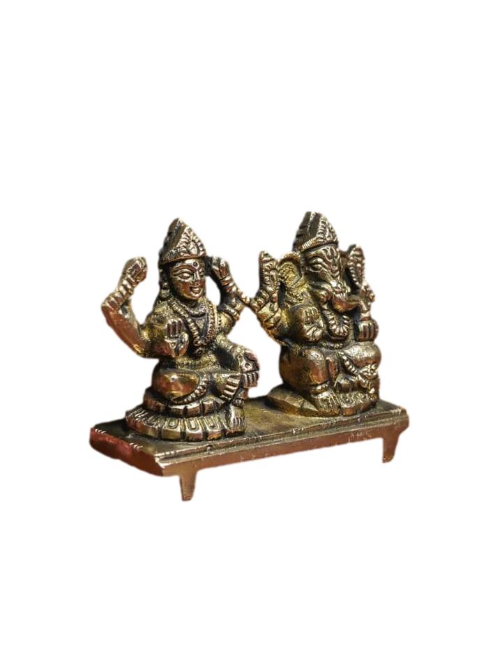 Enhance your home's spiritual aura with our exquisite Brass Lakshmi-Ganesha idol on Chowki. Crafted with intricate detailing, this idol captures the divine grace of Goddess Lakshmi and Lord Ganesha, symbolizing wealth, prosperity, and auspicious beginnings. The idol rests elegantly on a traditional Chowki, symbolizing stability and reverence. Made from high-quality brass, it exhibits a timeless charm with a lustrous finish that adds a touch of elegance to any space. Perfect for pooja rooms, offices, or as a thoughtful gift, this idol radiates positivity and blessings, making it a cherished addition to your spiritual collection.