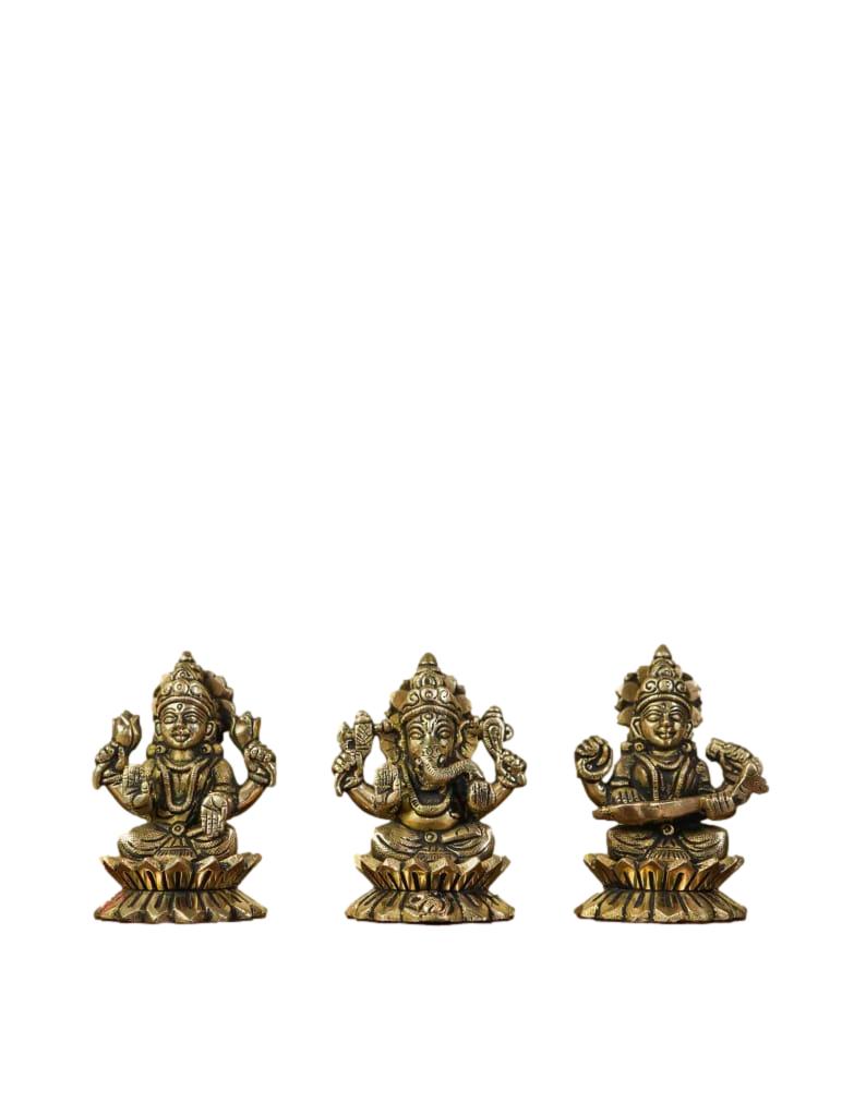 Grace your home with divine blessings embodied in this exquisite Brass Lakshmi Ganesha Saraswathi idol. Crafted with meticulous detail, this idol showcases the Hindu deities of wealth (Lakshmi), wisdom (Saraswathi), and prosperity (Ganesha) in harmonious union. Made from premium brass, it exudes an aura of timeless elegance and spiritual significance. Each intricately carved feature reflects skilled artistry, making it a captivating centerpiece for puja rooms or decorative displays. Its compact size ensures versatility in placement, whether adorning a mantelpiece or accentuating a sacred altar. Invite prosperity, knowledge, and auspiciousness into your life with this symbolic masterpiece.