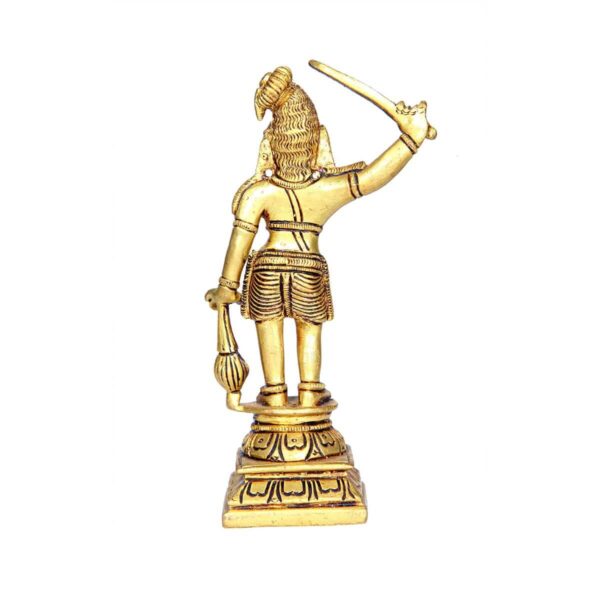 The Brass Madurai Veeran idol captures the essence of valor and protection, embodying the revered deity with intricate craftsmanship. Standing majestically, this idol reflects Madurai Veeran's legendary courage and guardianship. The brass material lends a timeless elegance, highlighting fine details like the warrior's traditional attire, fierce expression, and symbolic weaponry. This idol serves as a symbol of strength, bravery, and devotion, making it an ideal addition to home altars, spiritual spaces, or as a thoughtful gift. Its quality craftsmanship ensures durability, while the brass finish adds a touch of antiquity, making it a cherished piece for years to come.
