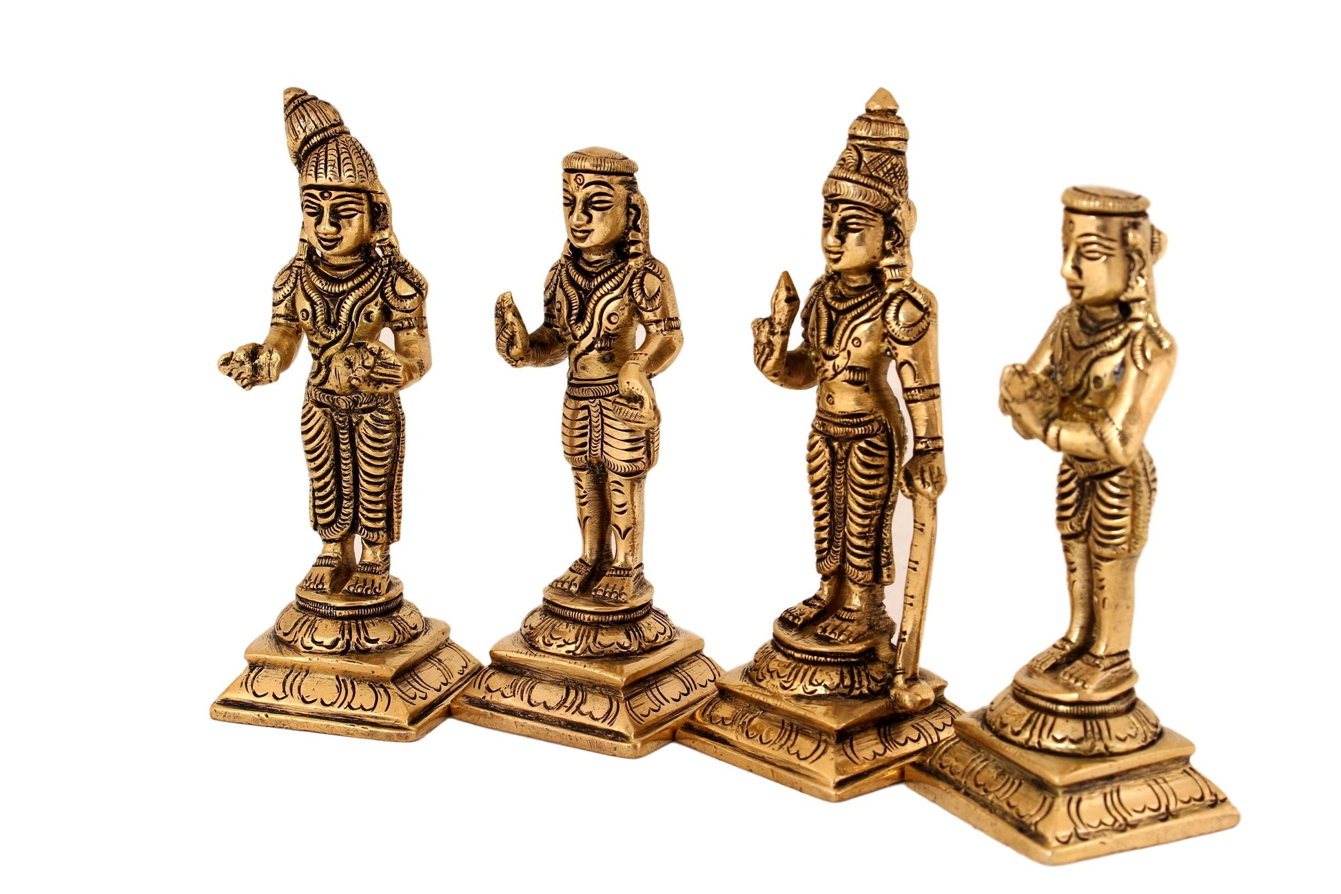 Brass Nalvar Set Statue (Appar, Sundarar, Manika Vasagar and Sambandar