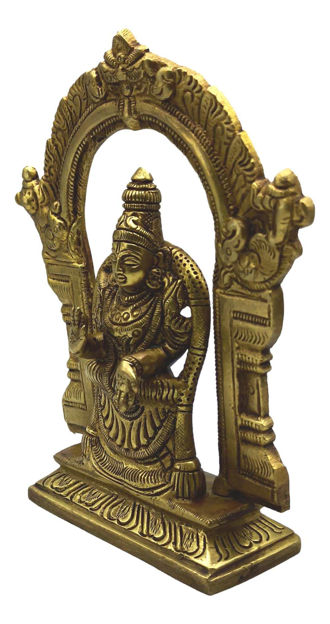 Crafted with exquisite detail and devotion, our Brass Padmavati Thayar idol epitomizes grace and divinity. Standing elegantly, Padmavati Thayar, the consort of Lord Venkateshwara, exudes tranquility and blessings. The intricate craftsmanship captures her serene expression and traditional attire, adorned with ornate jewelry that reflects timeless beauty. Made from high-quality brass, this idol is meticulously finished to perfection, showcasing the artistry of skilled craftsmen. Ideal for home or temple decor, this idol radiates positive energy, inviting auspiciousness and prosperity into your space. Embrace the divine presence of Padmavati Thayar with this stunning brass idol, a symbol of reverence and spirituality.