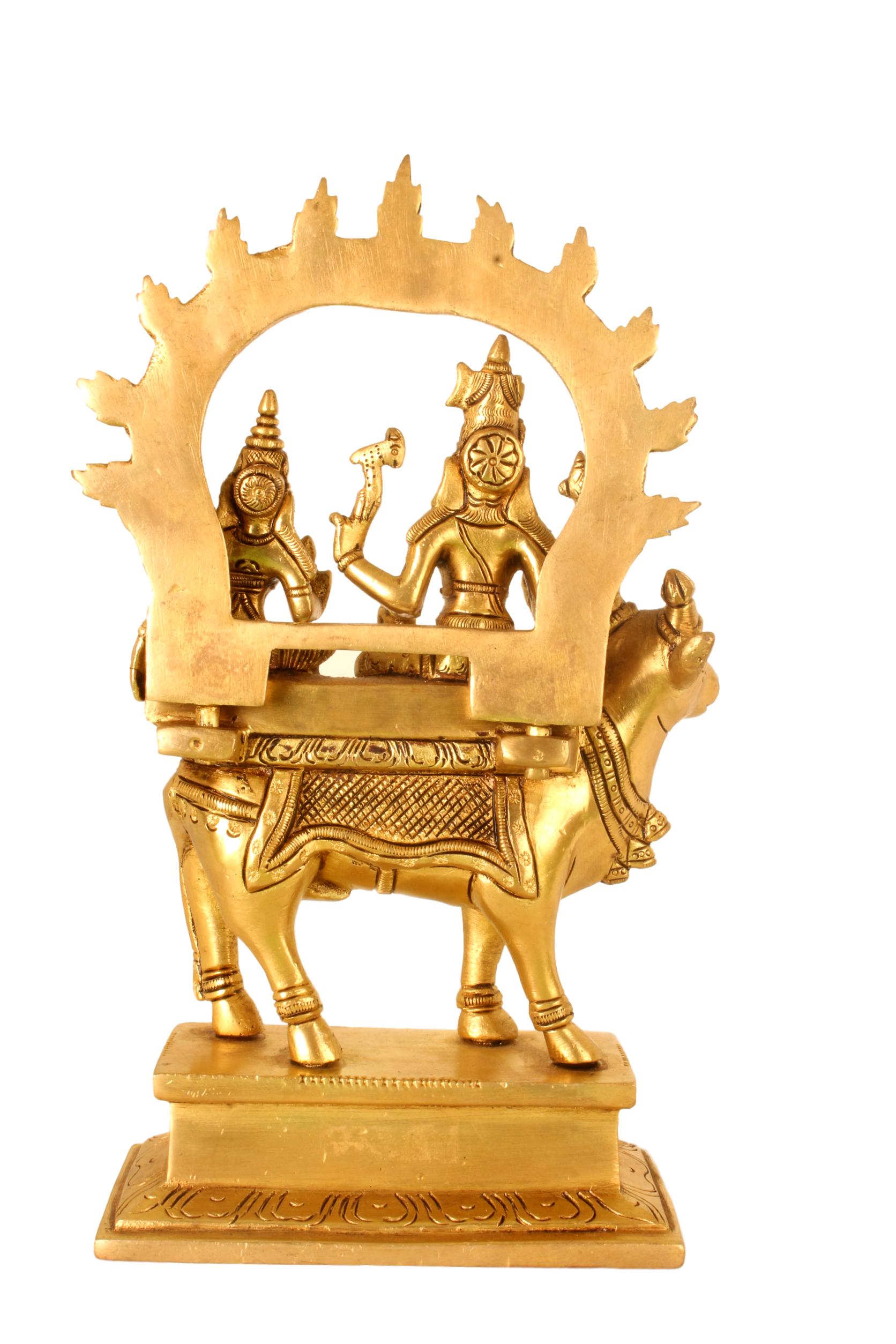 The Brass Pradosha Moorthy is a meticulously crafted idol symbolizing Lord Shiva during the auspicious Pradosha period, a time believed to bring immense blessings and prosperity. This exquisite piece is made from high-quality brass, showcasing intricate detailing and fine craftsmanship. The idol features Lord Shiva in a serene and majestic posture, embodying divine grace and spiritual energy. Perfect for home altars, temples, or as a unique decorative piece, the Brass Pradosha Moorthy adds a touch of sacredness and elegance to any space. It's an ideal gift for spiritual seekers, enhancing devotion and inviting positive energy into the home.