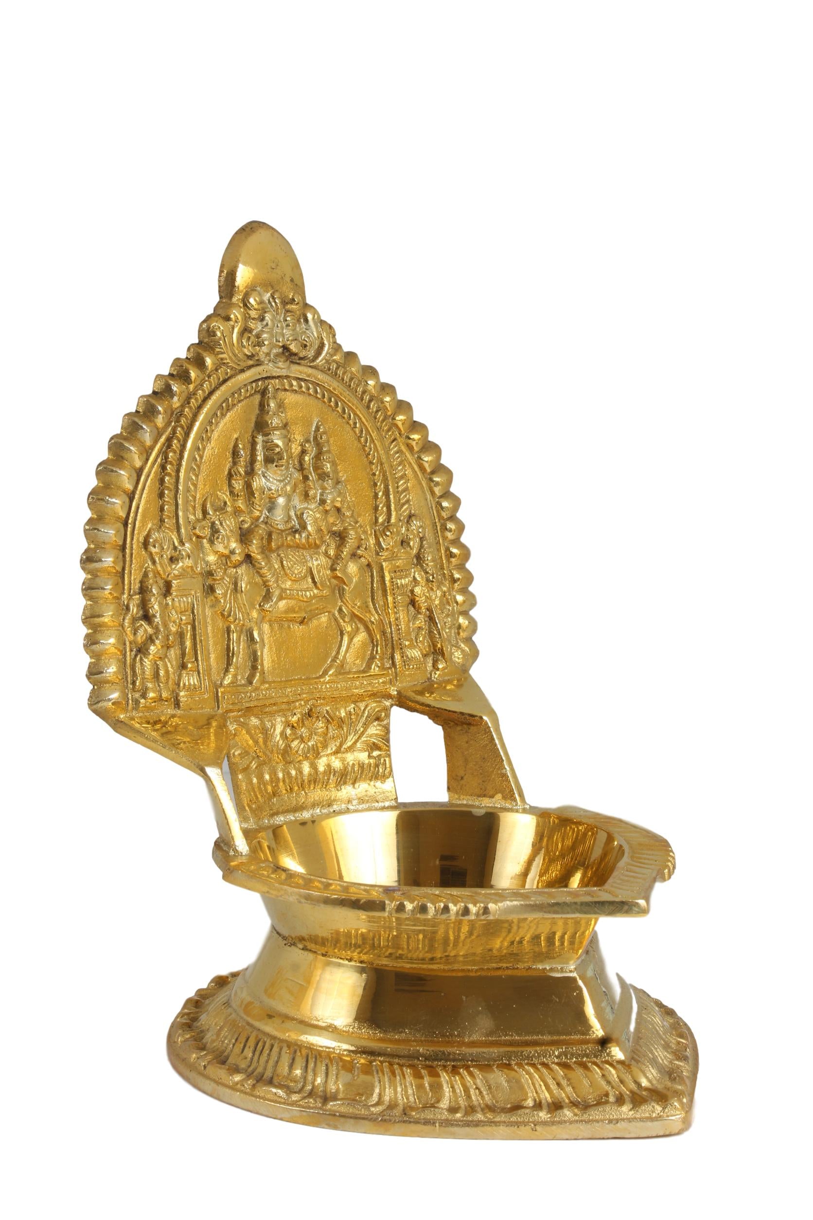 The Brass Pradosha Moorthy Lamp is a captivating piece that exudes traditional charm and spiritual significance. Crafted meticulously from high-quality brass, this lamp features intricate detailing and a lustrous finish. Its design incorporates symbols and motifs associated with Hindu mythology, making it a symbol of reverence and devotion. The lamp's sturdy base ensures stability, while its exquisite craftsmanship adds elegance to any sacred space or home altar. Ideal for use during Pradosha, a special time dedicated to Lord Shiva, this lamp enhances the ambiance with a warm, soothing glow, creating a serene atmosphere for prayers and meditation.