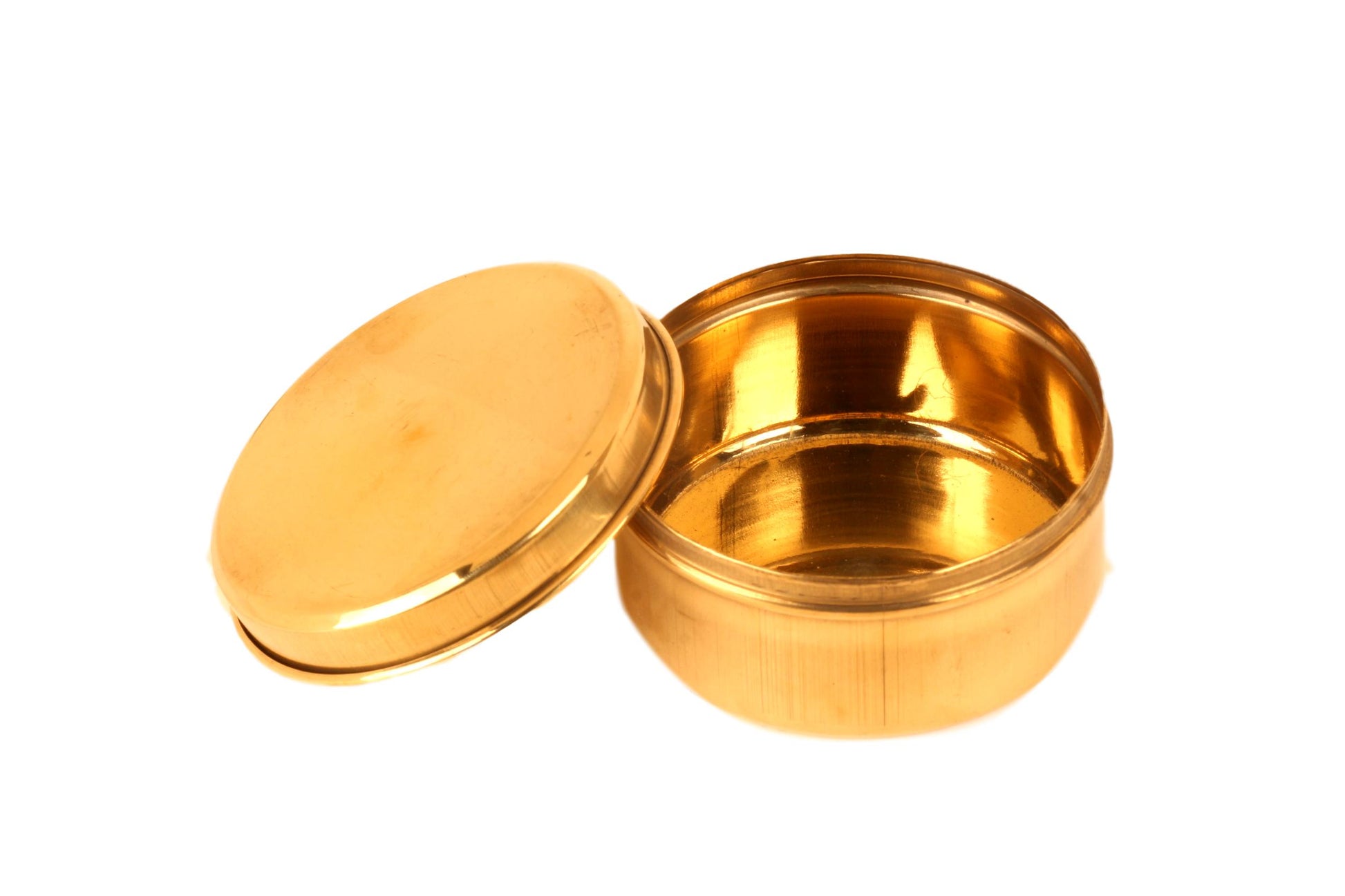 The Brass Prasadham Box Mandir is a beautifully crafted, traditional storage box designed to hold sacred offerings in your home temple. Made from high-quality brass, this box features intricate carvings that reflect the rich heritage of Indian craftsmanship. The sturdy lid ensures that the prasadham remains fresh and protected. Perfect for storing sweets, fruits, or other offerings, this prasadham box is both a functional and decorative addition to any puja space. Its elegant design and golden sheen add a touch of divine grace, making it an ideal gift for spiritual occasions and festivals.