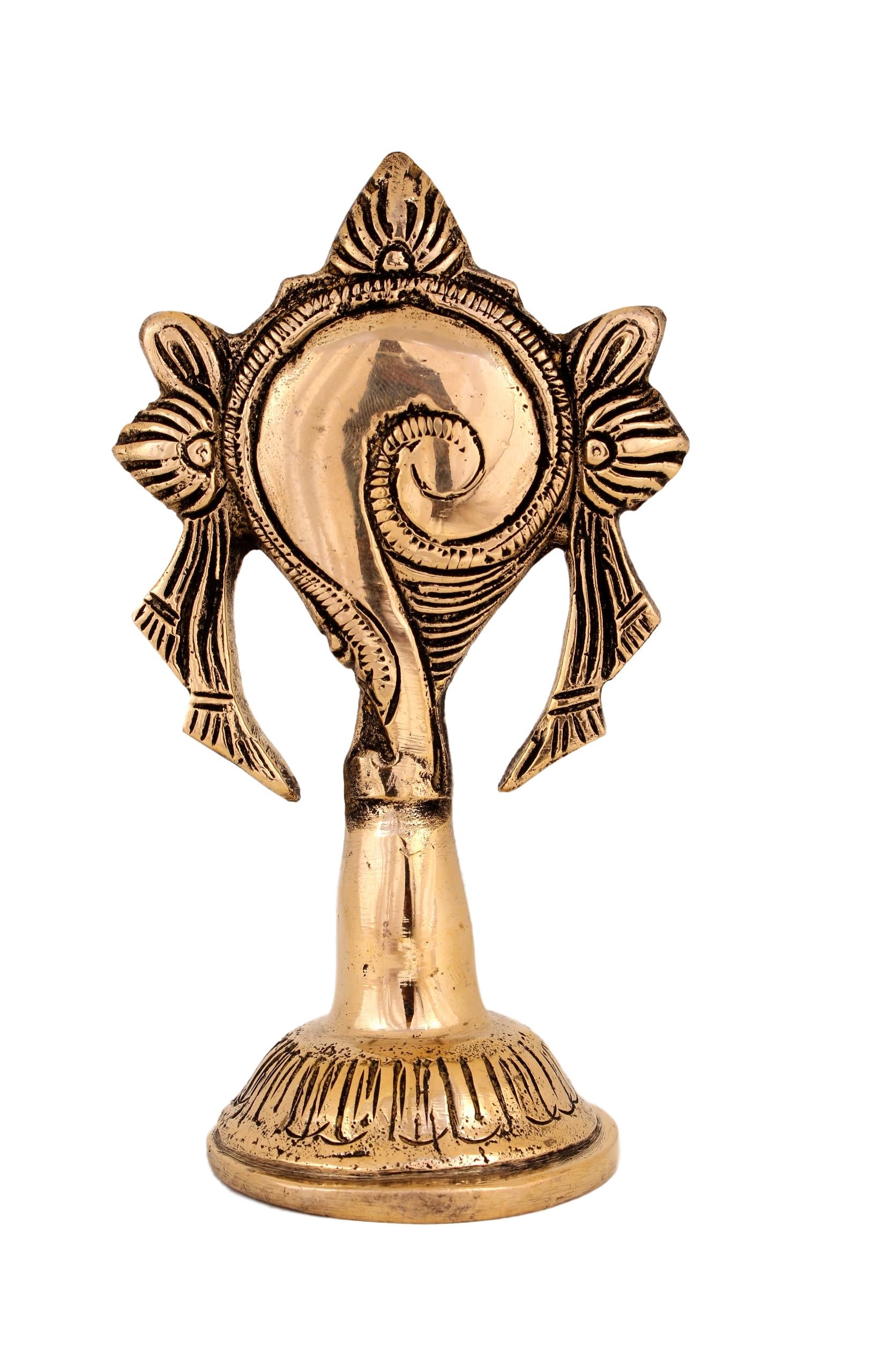 The Brass Sangu Chakara Stand is a divine addition to any sacred space, exuding traditional charm and spiritual significance. Crafted meticulously from high-quality brass, this stand features intricate engravings of the Sangu Chakara, symbolizing divine protection and blessings. The stand is designed to hold a Sangu Chakara, a sacred conch shell symbolizing purity and auspiciousness in Hindu traditions. Its sturdy construction ensures stability, making it suitable for daily rituals, pujas, and decorative purposes. The antique finish adds a touch of elegance, making it a perfect choice for devotees seeking a blend of functionality and spiritual aesthetics in their worship settings.
