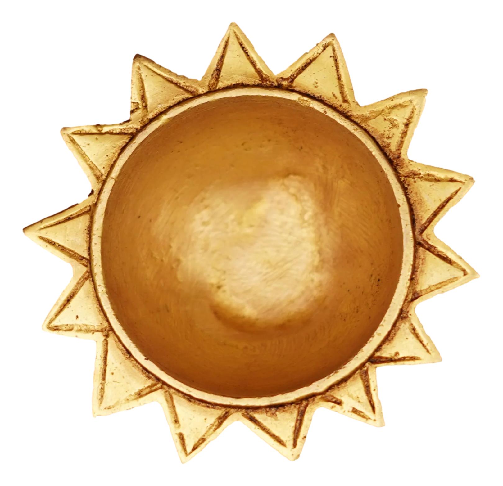 Illuminate your spiritual space with our exquisite Brass Sun Shaped Diya. Crafted with intricate detailing, this diya embodies the radiance of the sun, symbolizing purity and divinity. Its golden hue adds a touch of elegance to your home or altar. Perfect for offering prayers or as a decorative piece, this diya creates a serene ambiance, invoking blessings and positive energy. Embrace the warmth and glow of spirituality with our timeless Brass Sun Shaped Diya.