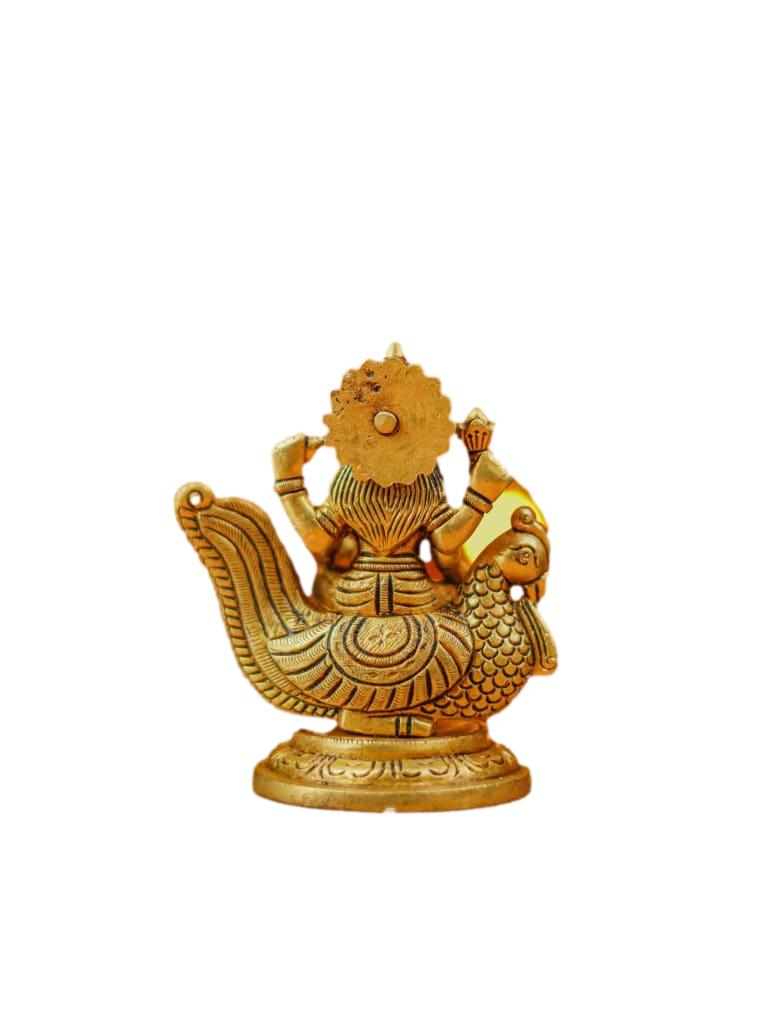 Introducing the Brass Swan Gayatri Idol, an exquisite piece that embodies divine grace and elegance. Crafted from premium quality brass, this idol features the revered Goddess Gayatri seated gracefully on a majestic swan. The intricate detailing showcases the artisans' dedication, with every aspect of the idol meticulously designed to perfection. Ideal for your pooja room or as a decorative centerpiece, this idol symbolizes wisdom, purity, and spiritual awakening. Its antique finish adds a timeless charm, making it a perfect gift for loved ones or a cherished addition to your spiritual collection. Elevate your space with this divine masterpiece.