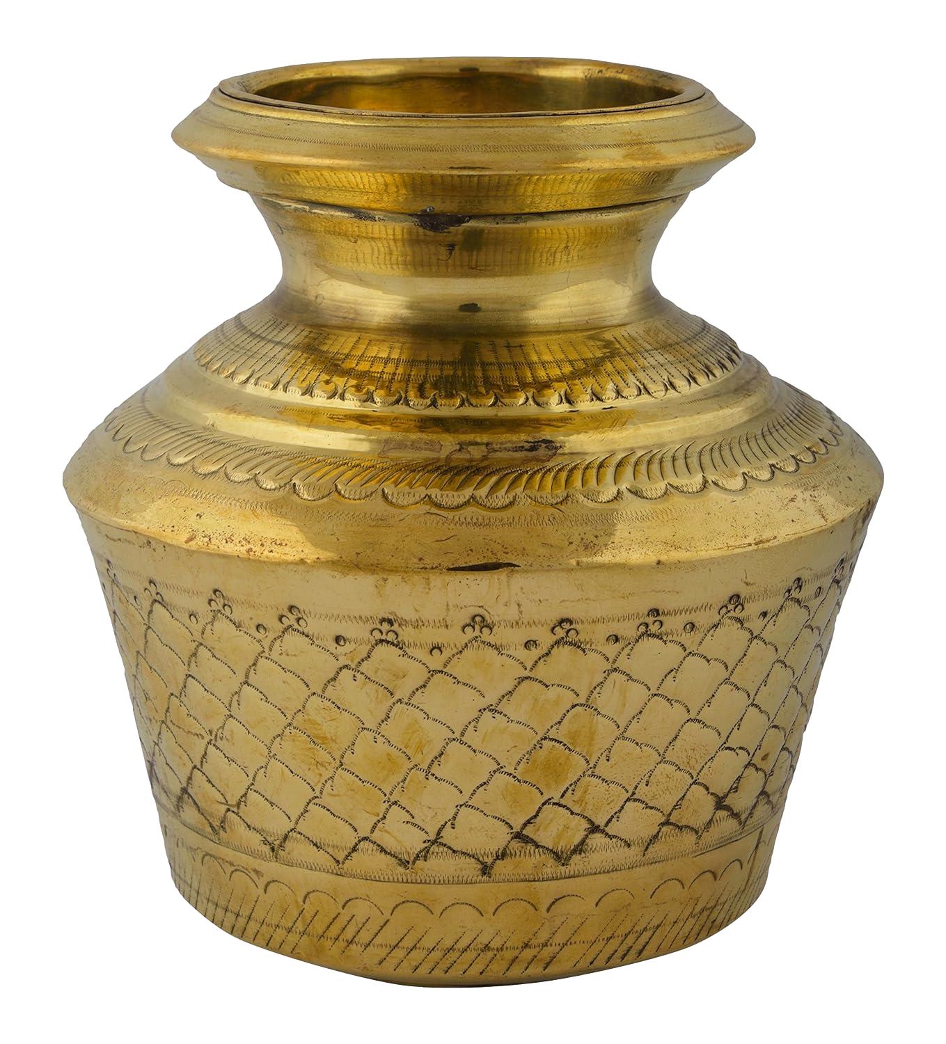 - Elevate your spiritual practices with our exquisite Brass Thiruman Kudam Naamam Sangu Chakra Kudam. Meticulously carved by skilled artisans, this sacred ensemble embodies intricate detailing and timeless elegance. Crafted from high-quality brass, it exudes a radiant aura, symbolizing purity and devotion. The Thiruman Kudam, Naamam, Sangu, and Chakra intricately entwined represent divine protection and spiritual harmony. Embrace the essence of tradition and spirituality with this captivating piece, perfect for religious ceremonies and as a cherished home decor artifact.
