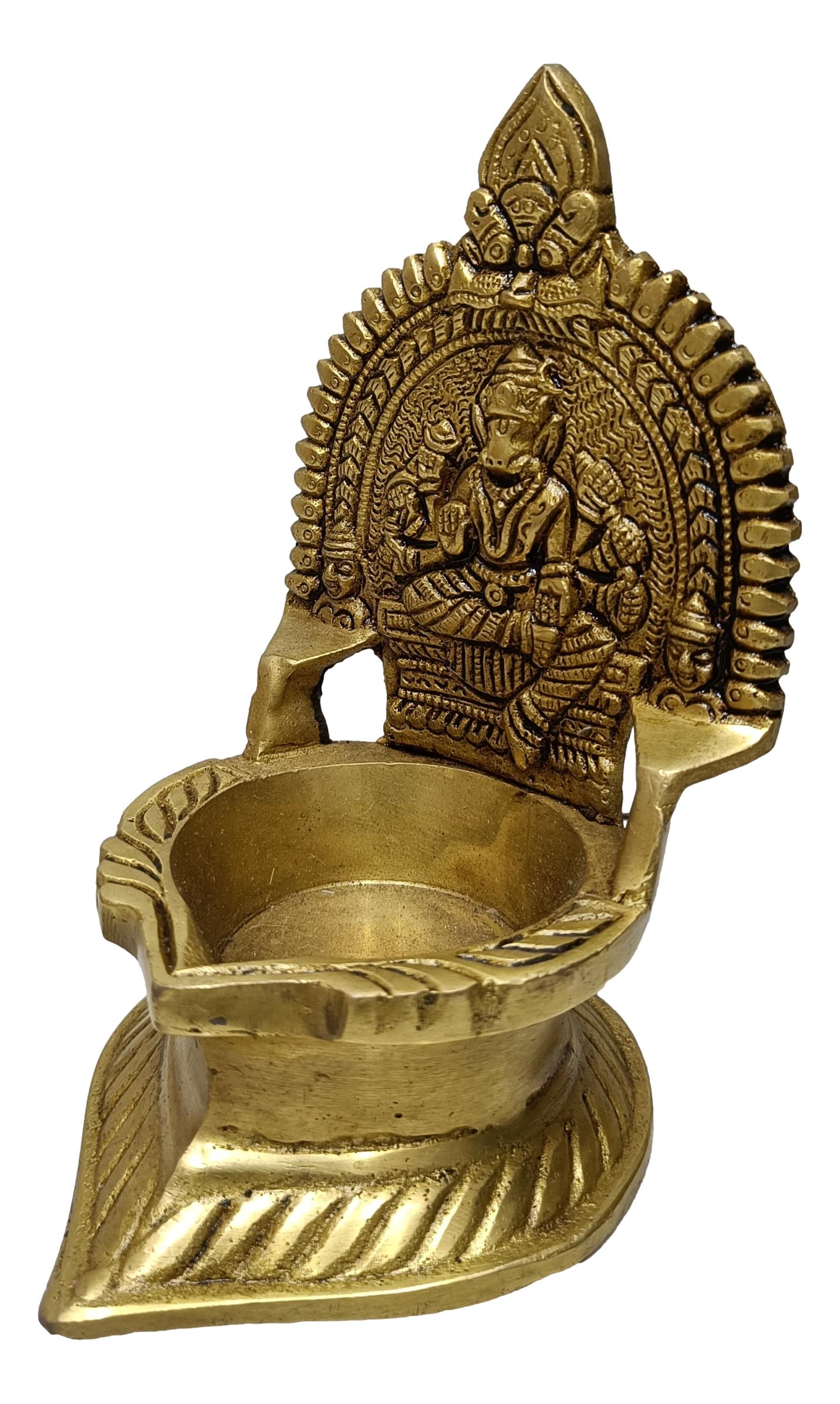 The Brass Varahi Amman Vilakku is a beautifully crafted traditional oil lamp, embodying the rich heritage of Indian artistry. Made from high-quality brass, this lamp features an intricate design depicting Varahi Amman, a revered goddess known for her protective powers. Ideal for spiritual rituals and home décor, this vilakku enhances the ambiance with its warm, inviting glow. Its antique finish adds a timeless elegance, making it a perfect gift or addition to any sacred space. Experience the divine energy and cultural significance with the Brass Varahi Amman Vilakku, a symbol of grace and tradition.