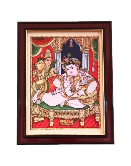 Experience divine beauty with the Butter Pot Krishna Tanjore Style Antique Photo Frame, a masterpiece that captures the essence of Lord Krishna's playful charm. This exquisite frame showcases intricate Tanjore-style artwork, depicting Krishna with the butter pot, symbolizing his mischievous yet endearing nature. The antique finish adds a touch of timeless elegance, making it a captivating addition to any home or sacred space. Crafted with attention to detail, the frame exudes a sense of devotion and artistic finesse, inspiring awe and reverence. Whether displayed in your living space or gifted to a loved one, the Butter Pot Krishna Tanjore Style Antique Photo Frame brings the blessings and beauty of Krishna into your life, creating a serene and spiritual ambiance.