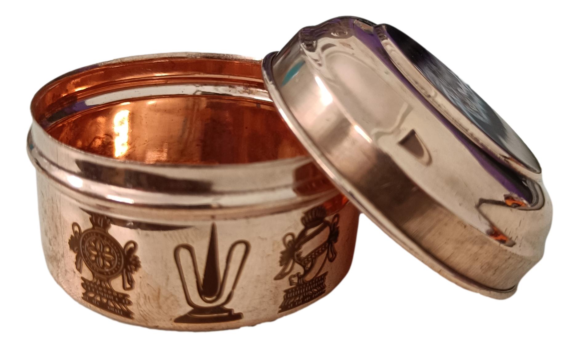 The Copper Pooja Box Vadakalai Tiruman is a divine embodiment of tradition and spirituality. Crafted with exquisite artistry, this box features intricate designs that reflect the essence of Hindu rituals. Its durable copper construction ensures longevity, making it ideal for storing sacred items like Kumkum, Turmeric, and Sandalwood. The Vadakalai Tiruman design adds a touch of elegance, making it a perfect addition to your puja room or as a thoughtful gift for loved ones seeking spiritual blessings.