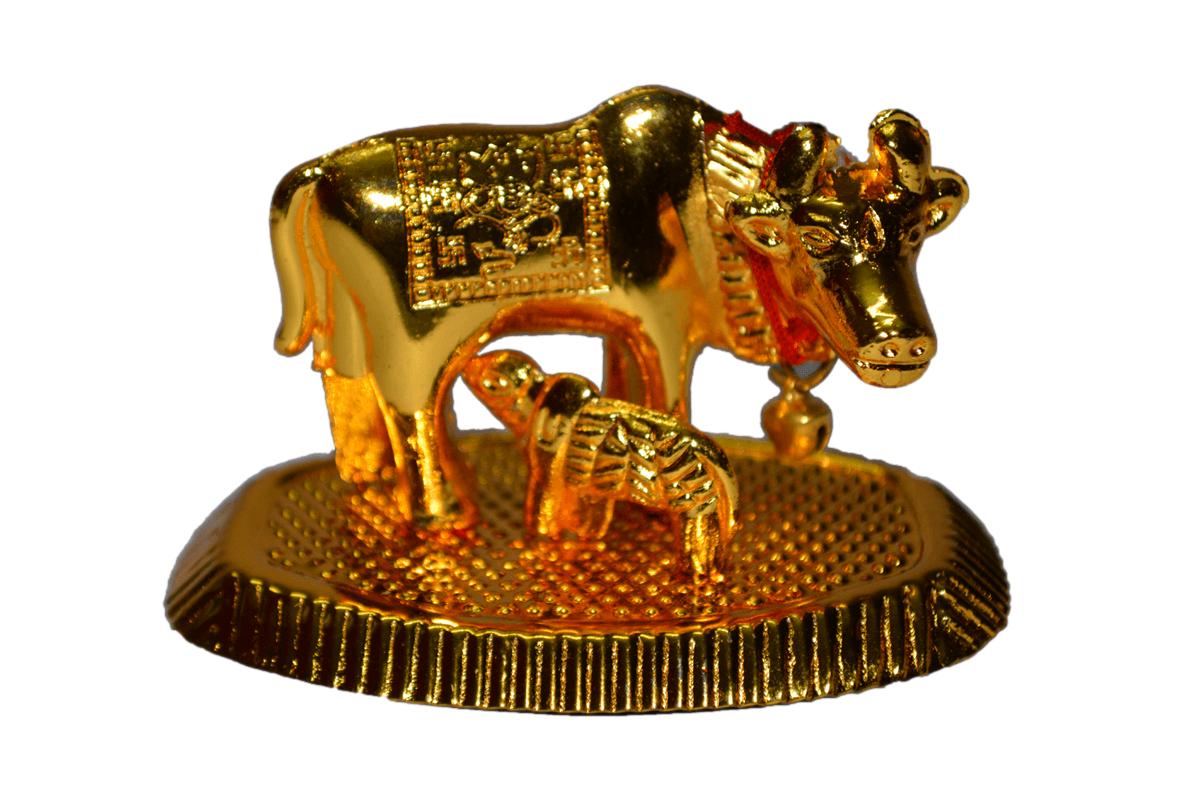 Introducing a timeless symbol of purity and prosperity, our Cow and Calf Gold Coated figurine embodies divine grace and elegance. Crafted with exquisite detail, this piece showcases the revered cow and calf duo, revered in Hindu culture as symbols of maternal love and abundance. The gold coating adds a touch of luxury and sophistication, making it a perfect addition to your home or as a thoughtful gift for loved ones. Whether displayed in your living room, altar, or workspace, this beautifully crafted figurine exudes positivity, serenity, and a deep connection to spirituality.