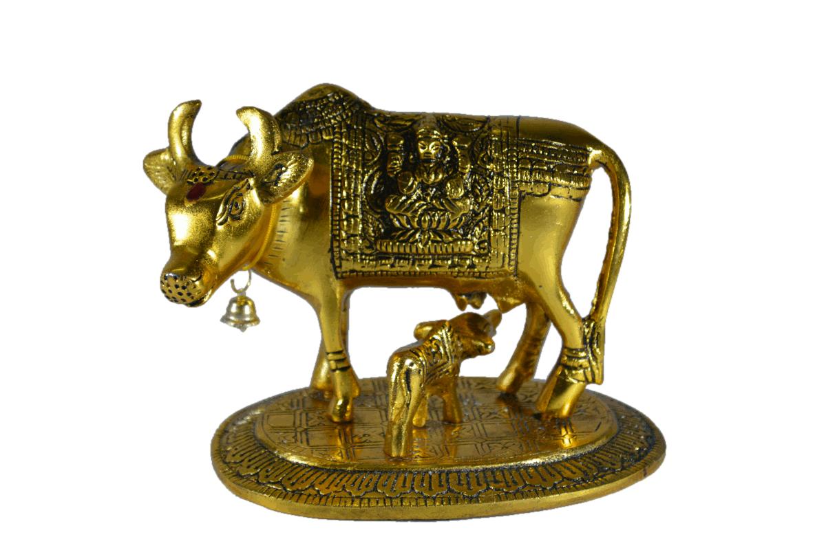 Experience the divine presence of the Cow and Calf Gold Coated figurine, a symbol of purity and prosperity. Crafted with meticulous detail and coated in radiant gold, this masterpiece exudes elegance and charm. The cow represents motherhood, fertility, and nourishment, while the calf signifies innocence and protection. Place this enchanting piece in your home or office to invite blessings of abundance and harmony. Whether as a decorative accent or a thoughtful gift, the Cow and Calf Gold Coated figurine is sure to captivate hearts and inspire a sense of reverence for these sacred beings in Hindu tradition.