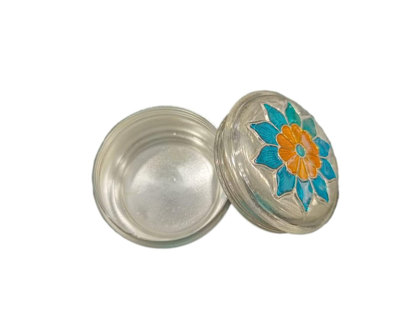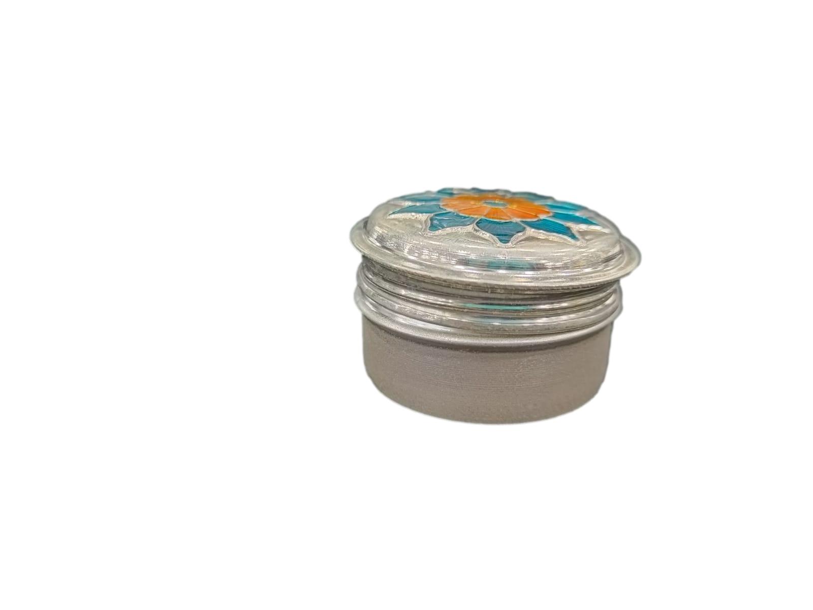 Enamel Pure Silver Kumkum Round Box - 17gm