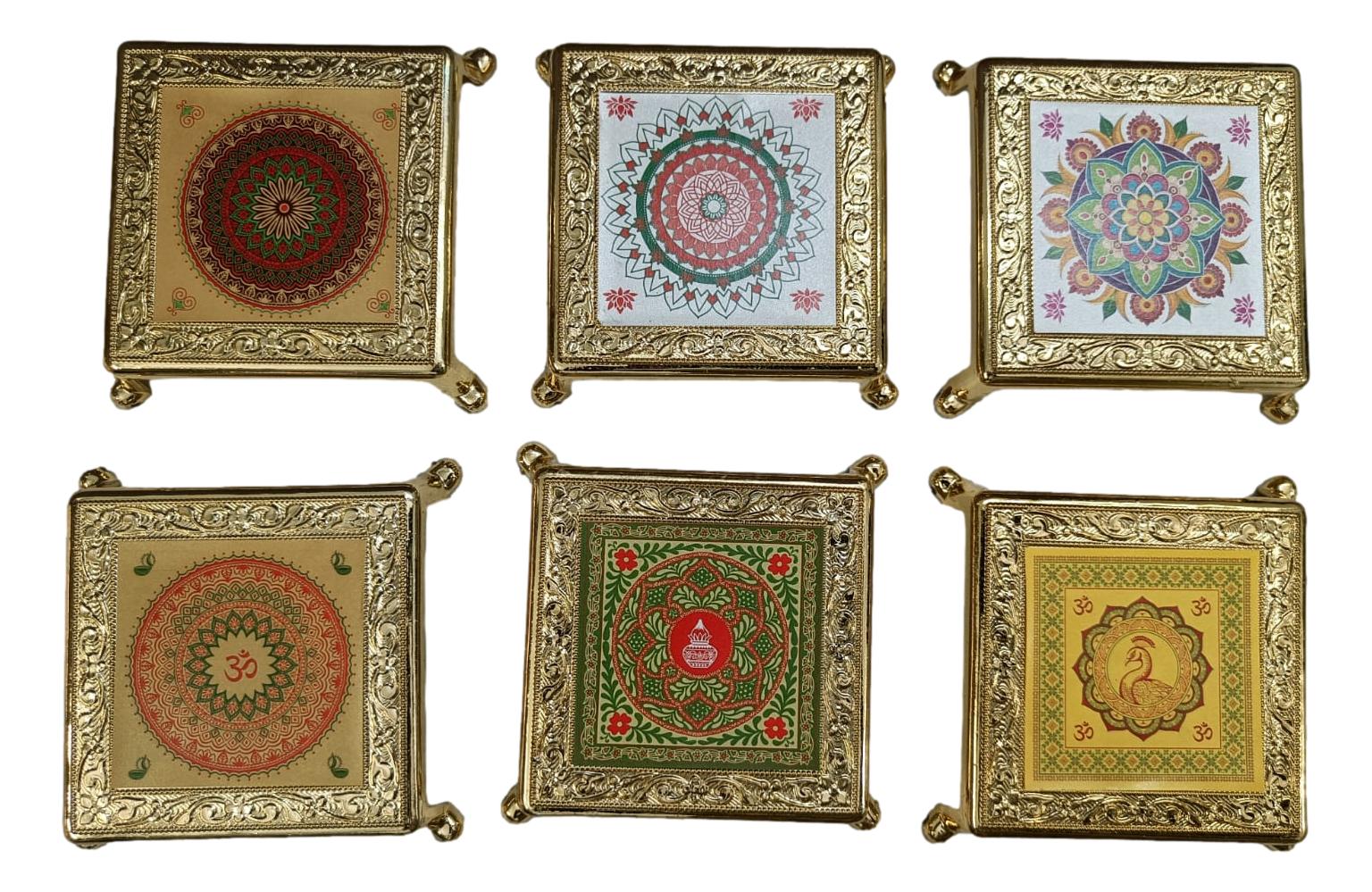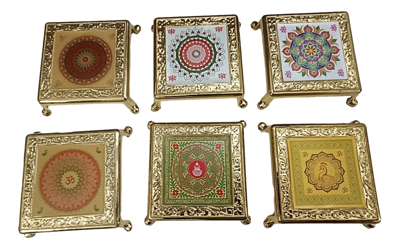 Set of 6 colorful printed deity stands made from durable fibre and plastic, featuring various divine images ideal for puja rooms, altars, or gifting. Compact and lightweight, perfect for home use, return gifts, or festive occasions.