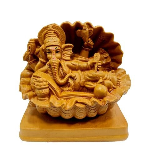 This unique idol features Lord Ganesha lying gracefully inside a conch shell, finished in an elegant wooden texture. Symbolizing peace, protection, and divine energy, it brings a serene charm to any spiritual corner or home decor. A perfect gift for devotees and lovers of traditional art.