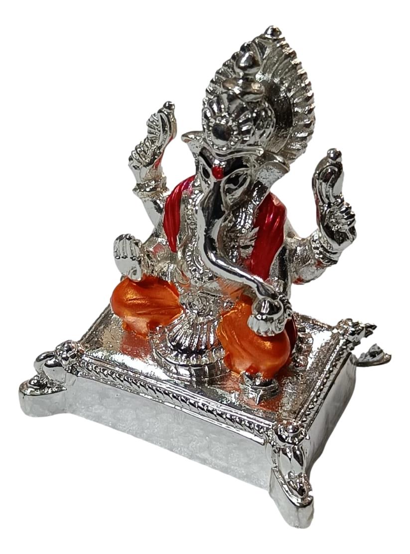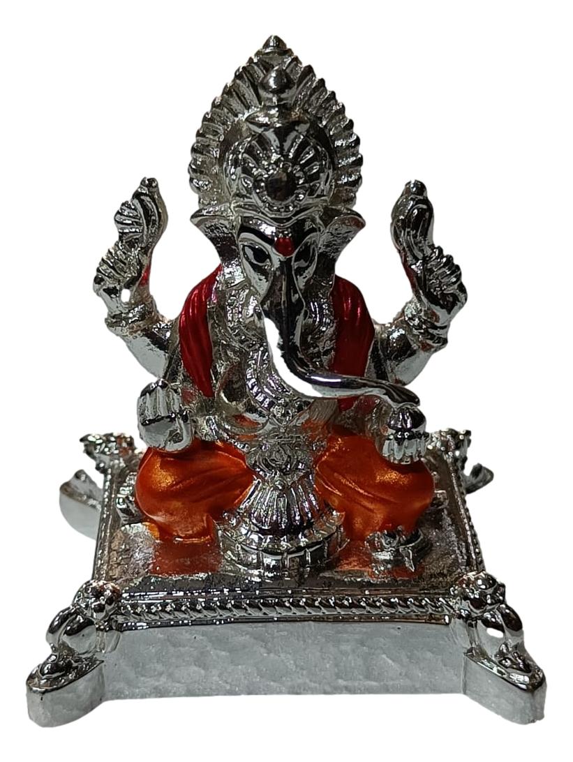 Ganesha Silver Coated Orange Colour