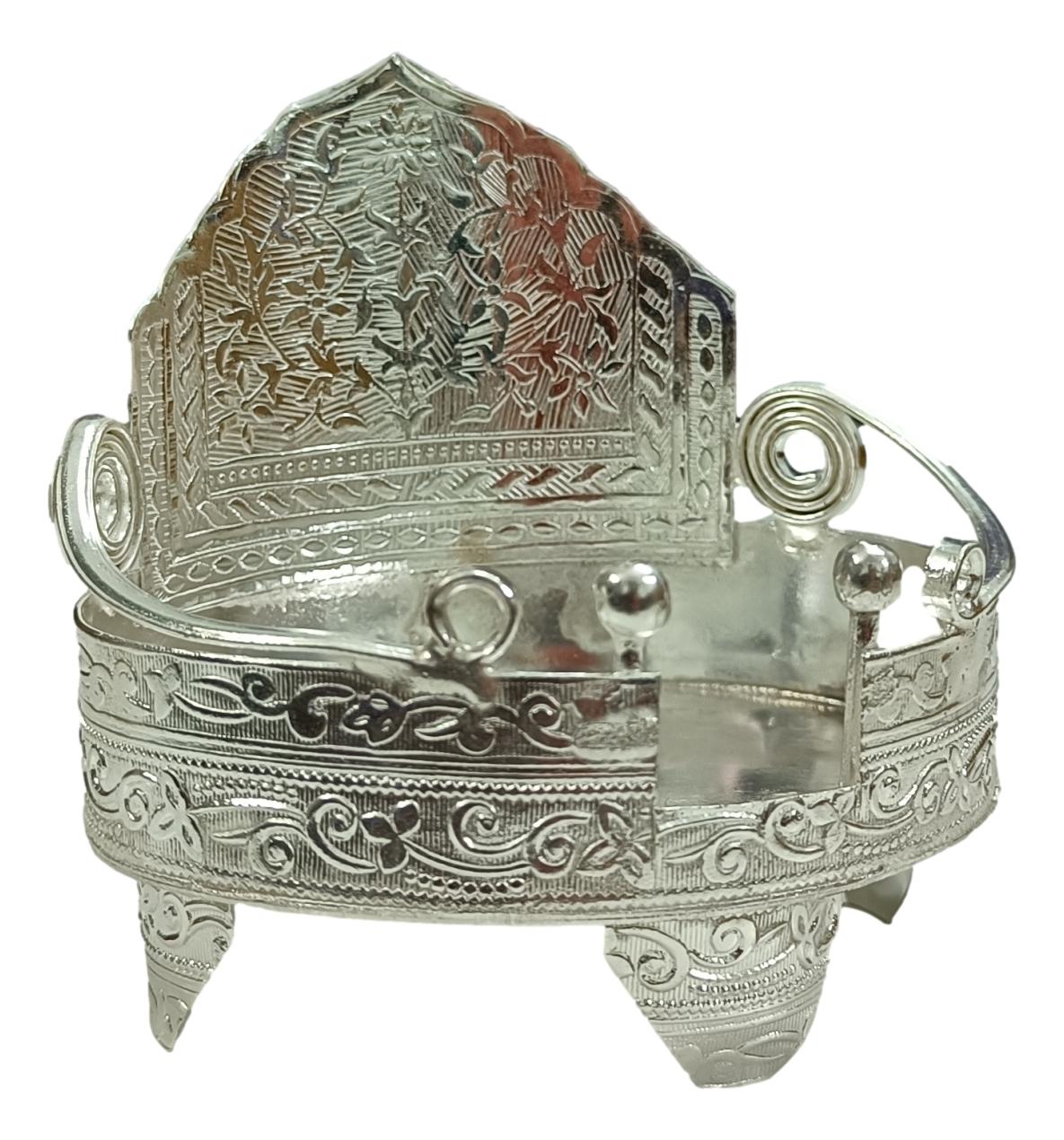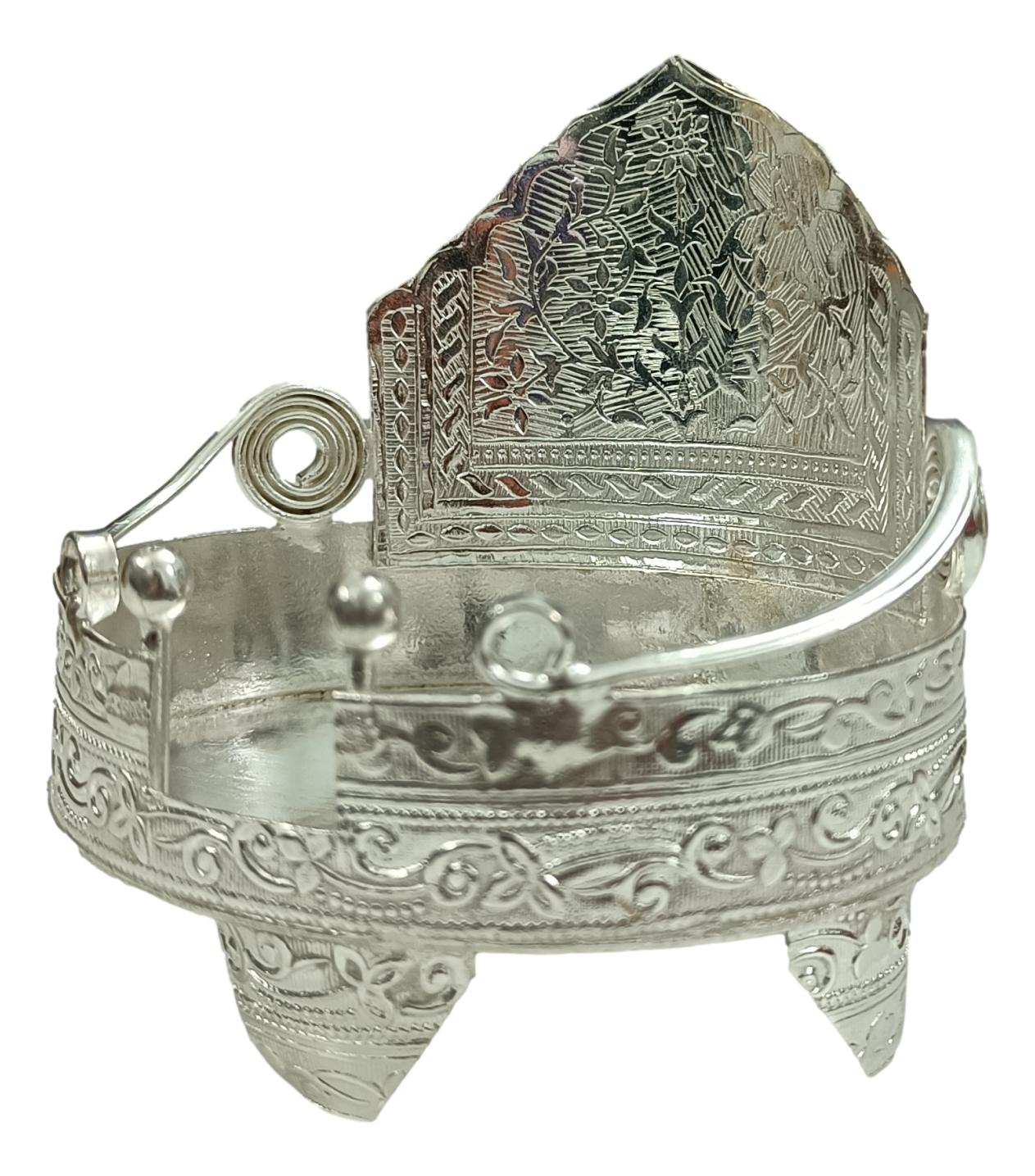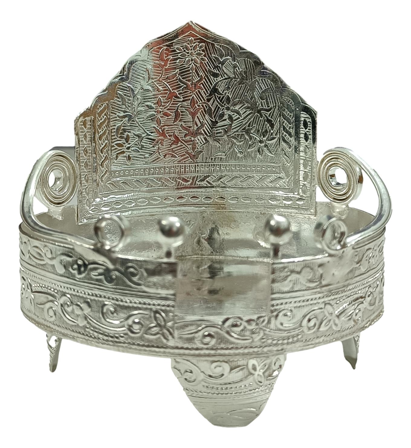 The German Silver Deity Stand is a beautifully crafted decorative item, perfect for displaying your favorite deities or idols. Made from high-quality German Silver, it features intricate detailing and a smooth finish, enhancing its elegant appearance. The sturdy base ensures stability, while the polished surface adds a touch of sophistication to any space. Ideal for use in homes, temples, or as a unique gift, this stand combines traditional craftsmanship with modern aesthetics, making it a timeless piece for showcasing spiritual icons. Its durable construction ensures longevity, allowing it to be a cherished part of your decor for years to come.