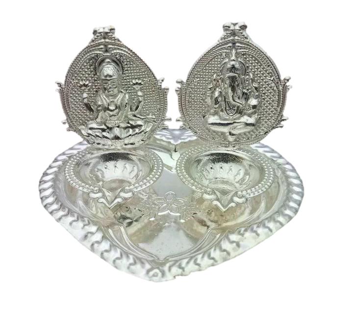 Illuminate your sacred space with grace using our exquisite German Silver Lakshmi Ganesha Diya. Crafted with meticulous detail, this diya features intricate designs of Goddess Lakshmi and Lord Ganesha, symbolizing prosperity and auspicious beginnings. Made from high-quality German silver, it radiates elegance and durability. Perfect for spiritual rituals, festivals, or as a decorative piece, this diya adds a touch of tradition and charm to your home or worship area.