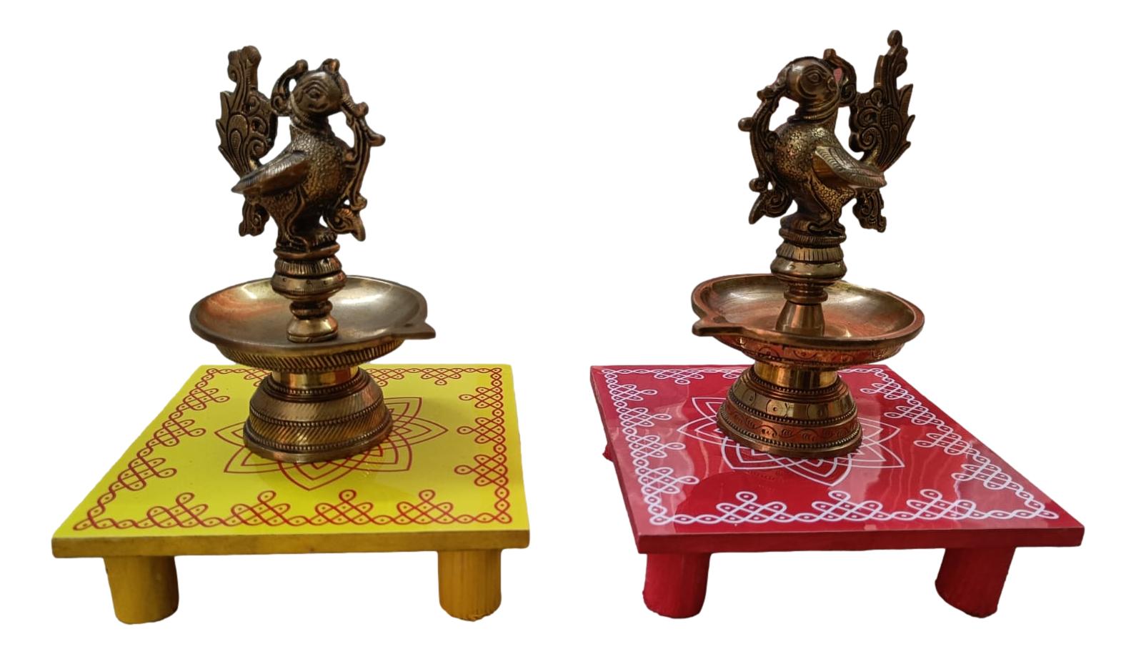 The Hridaya Kamalam Lotus Wooden Stand Puja Chowki is a beautifully crafted piece designed for spiritual rituals and home décor. Made from premium quality wood, this stand features an intricate lotus design symbolizing purity and enlightenment. The sturdy build ensures durability, while the smooth finish adds an elegant touch to any space. Ideal for placing idols, lamps, or sacred items, it enhances the spiritual ambiance of your home. Perfect for daily worship or special occasions, the Hridaya Kamalam Lotus Wooden Stand Puja Chowki brings a sense of tranquility and reverence to your sacred rituals.