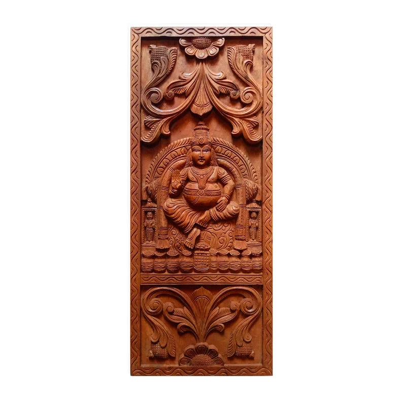 The Jackfruit Wooden Kubera Wall Panel is a symbol of prosperity and abundance. Crafted from durable jackfruit wood, this wall panel features a beautifully carved depiction of Kubera, the Hindu deity associated with wealth and material prosperity.