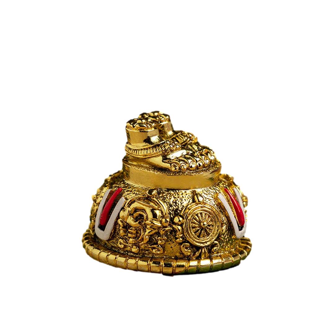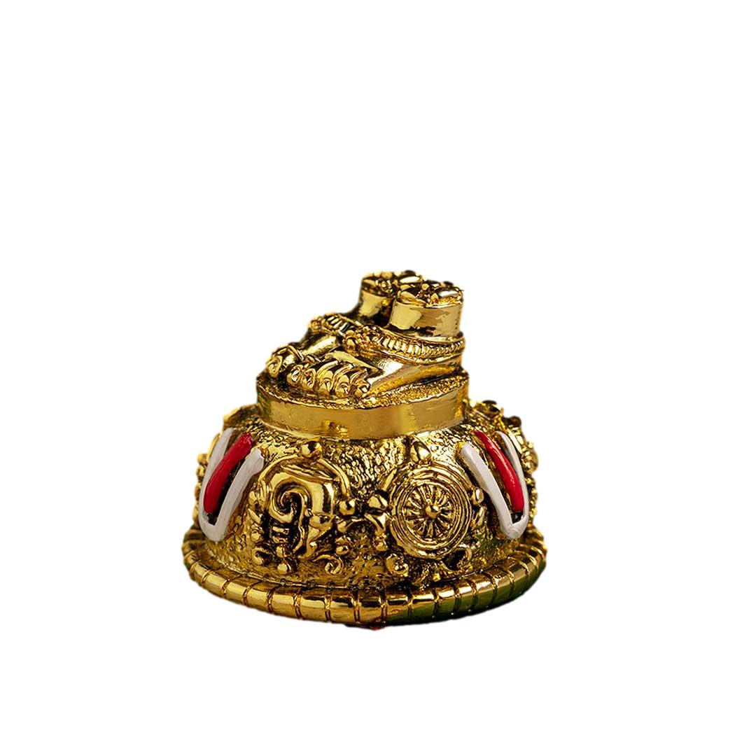 This sacred representation of Lord Venkateswara’s divine feet is intricately designed with the holy symbols of Shanku (conch), Chakra (discus), and Namam. Finished in 24K antique gold plating, it radiates spiritual charm and auspiciousness. Ideal for placing in your altar or gifting on religious occasions.
