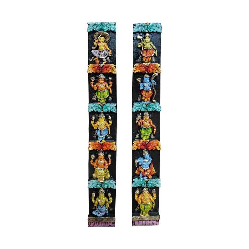 Each avatar is meticulously detailed, capturing the essence of divine intervention and cosmic order. The multicolour finish adds vibrancy and depth, enhancing the intricate carvings and making each figure stand out vividly.